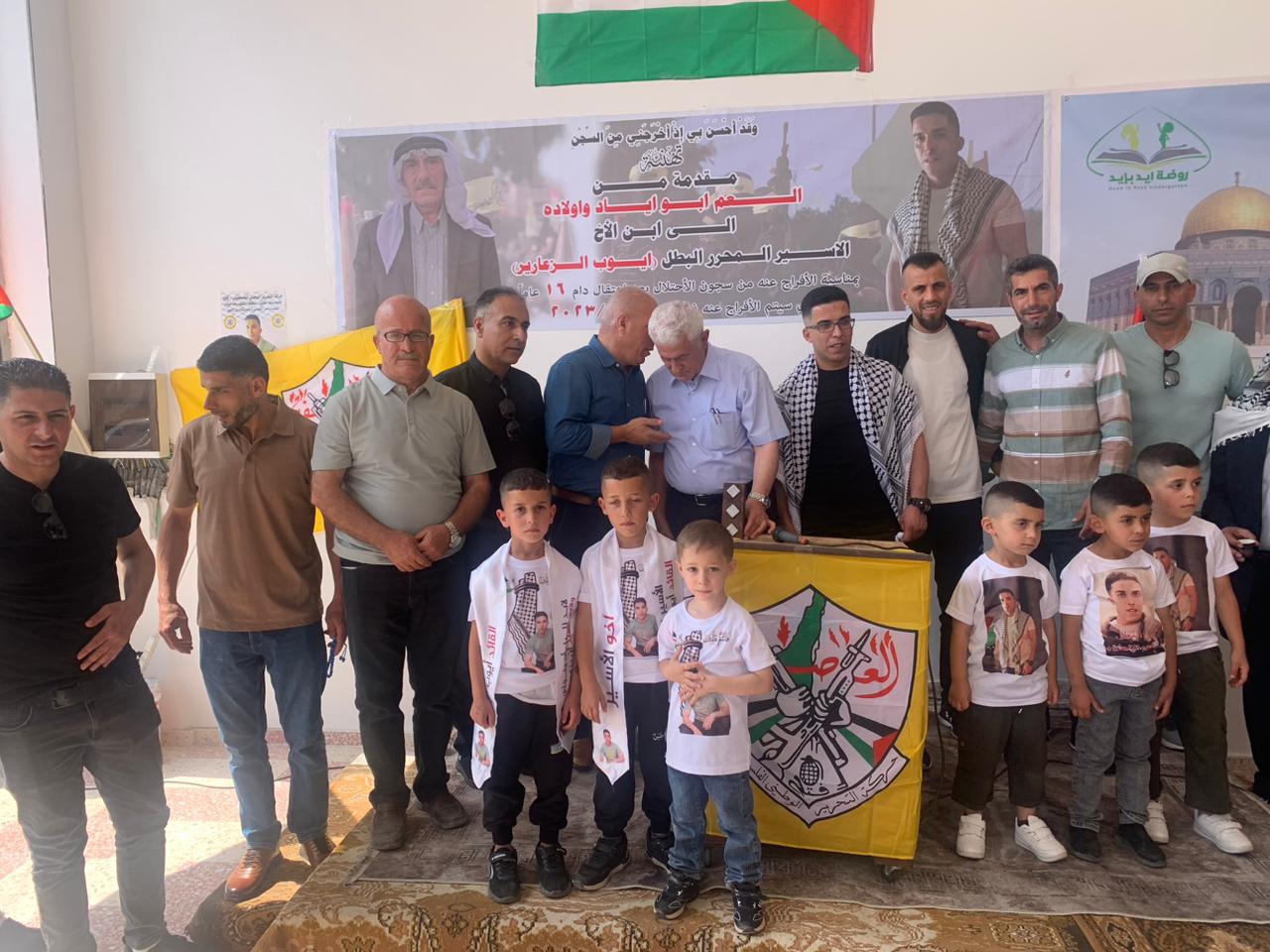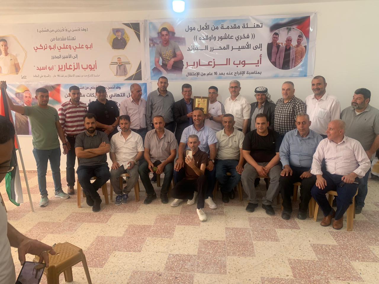 جانب من استقبال نادي الأسير الفلسطيني في الخليل للأسيرين المحررين عامر ابو رموز وأيوب الزعارير بعد اعتقال دام 16 عام في سجون الاحتلال
