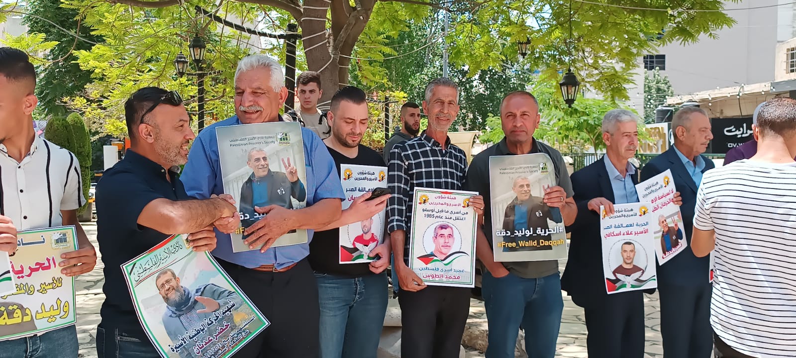 مؤسسات الأسرى تنظم وقفة دعم وإسناد للأسير وليد دقة وكافة الأسرى المرضى في سجون الاحتلال في بيت لحم بمشاركة زوجته وابنته.
