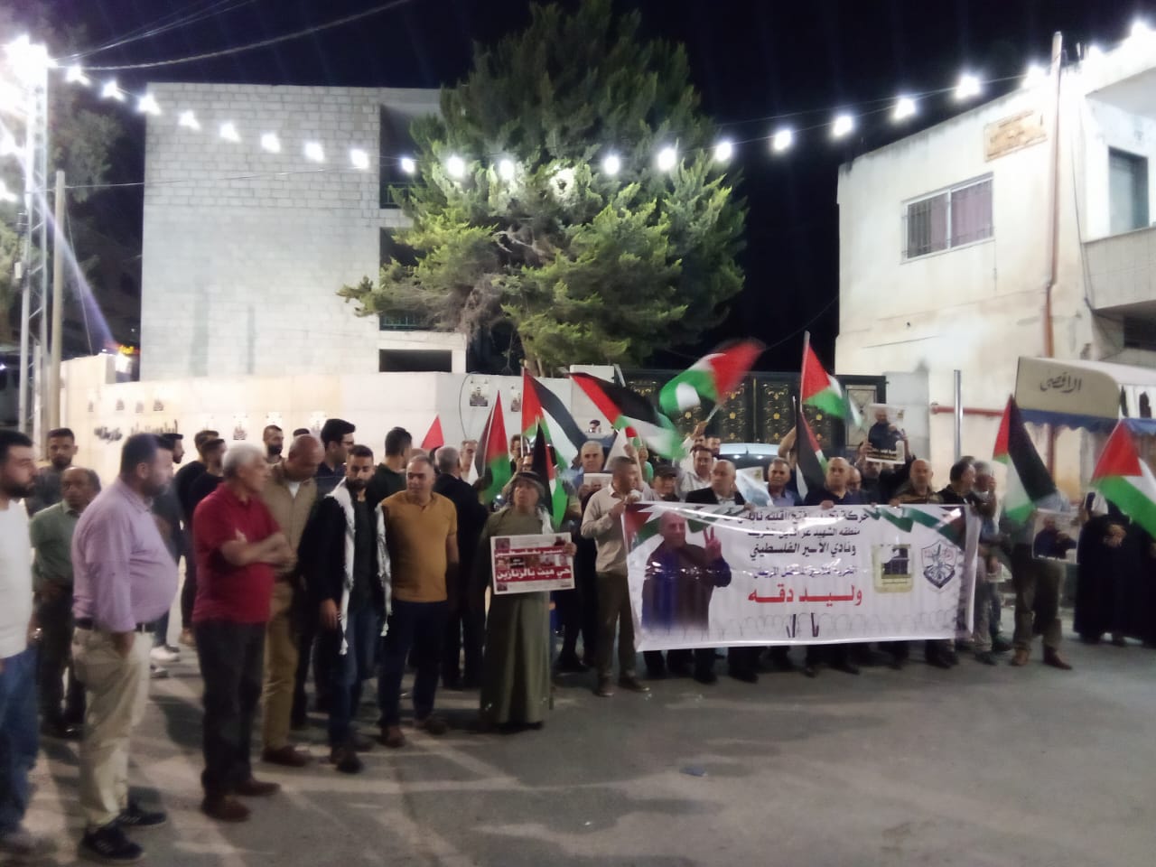 نابلس: من الوقفة التي نظمت مساء اليوم في بلدة عصيرة الشمالية إسنادًا للقائد الأسير وليد دقة والأسير عاصف الرفاعي وكافة الأسرى المرضى.