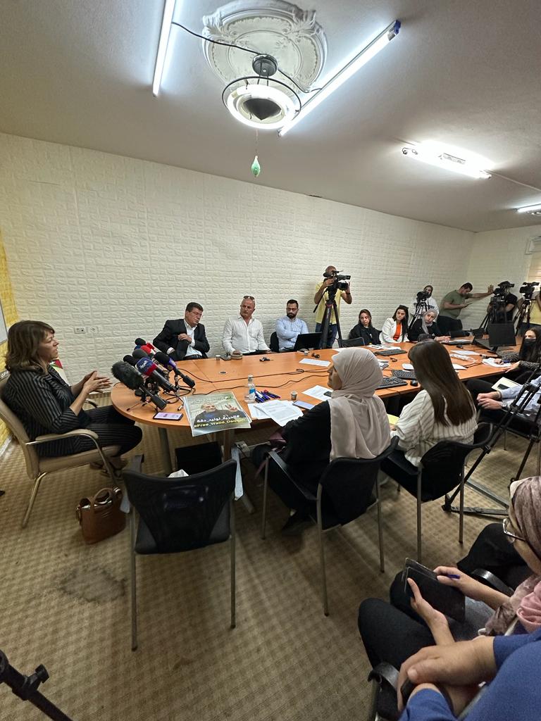 من اللقاء الصحفي الذي نظمه نادي الأسير، بحضور زوجة الأسير القائد وليد دقة، وذلك حول مستجدات الوضع الصحي له والمسار القانوني الذي بدأت به عائلته