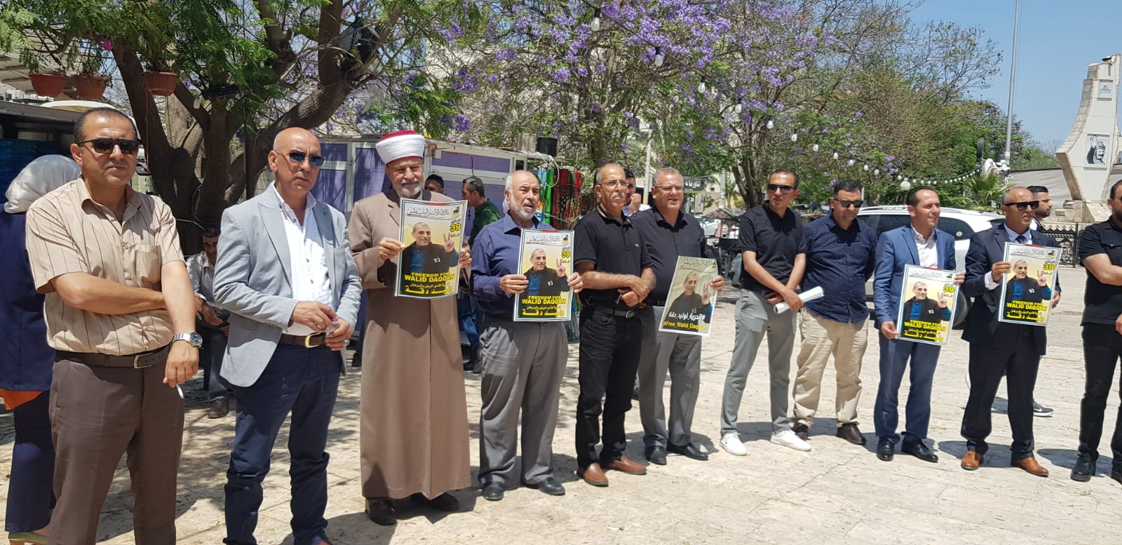 صور وقفة في مدينة الخليل، تضامنًا ودعمًا للأسير المريض وليد دقة