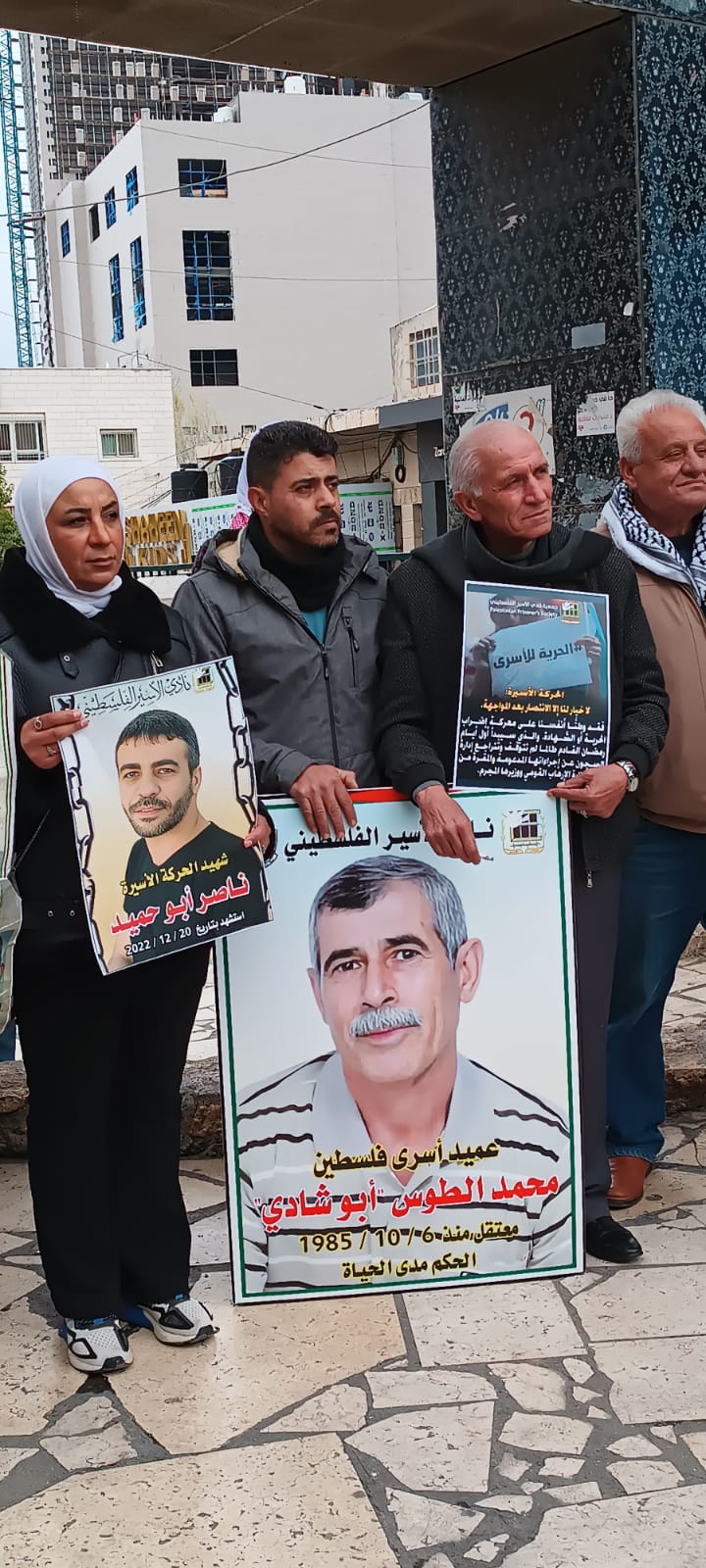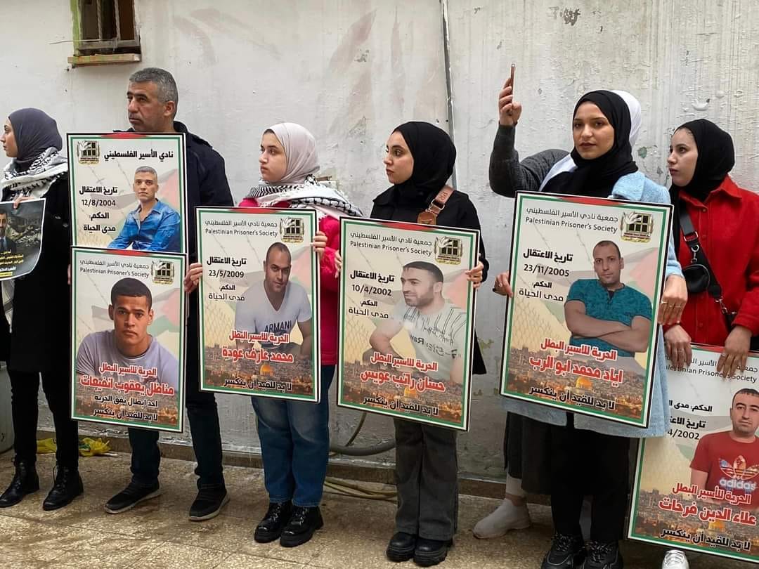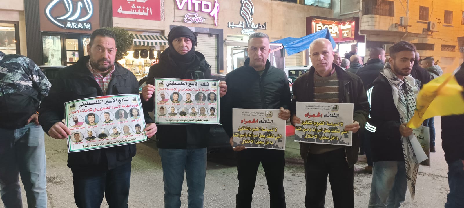 جانب من الوقفة الاسنادية للاسرى والاسيرات عل دوار مدينة اريحا مساء اليوم الثلاثاء تلبية لنداء الأسرى الثلاثاء الحمراء