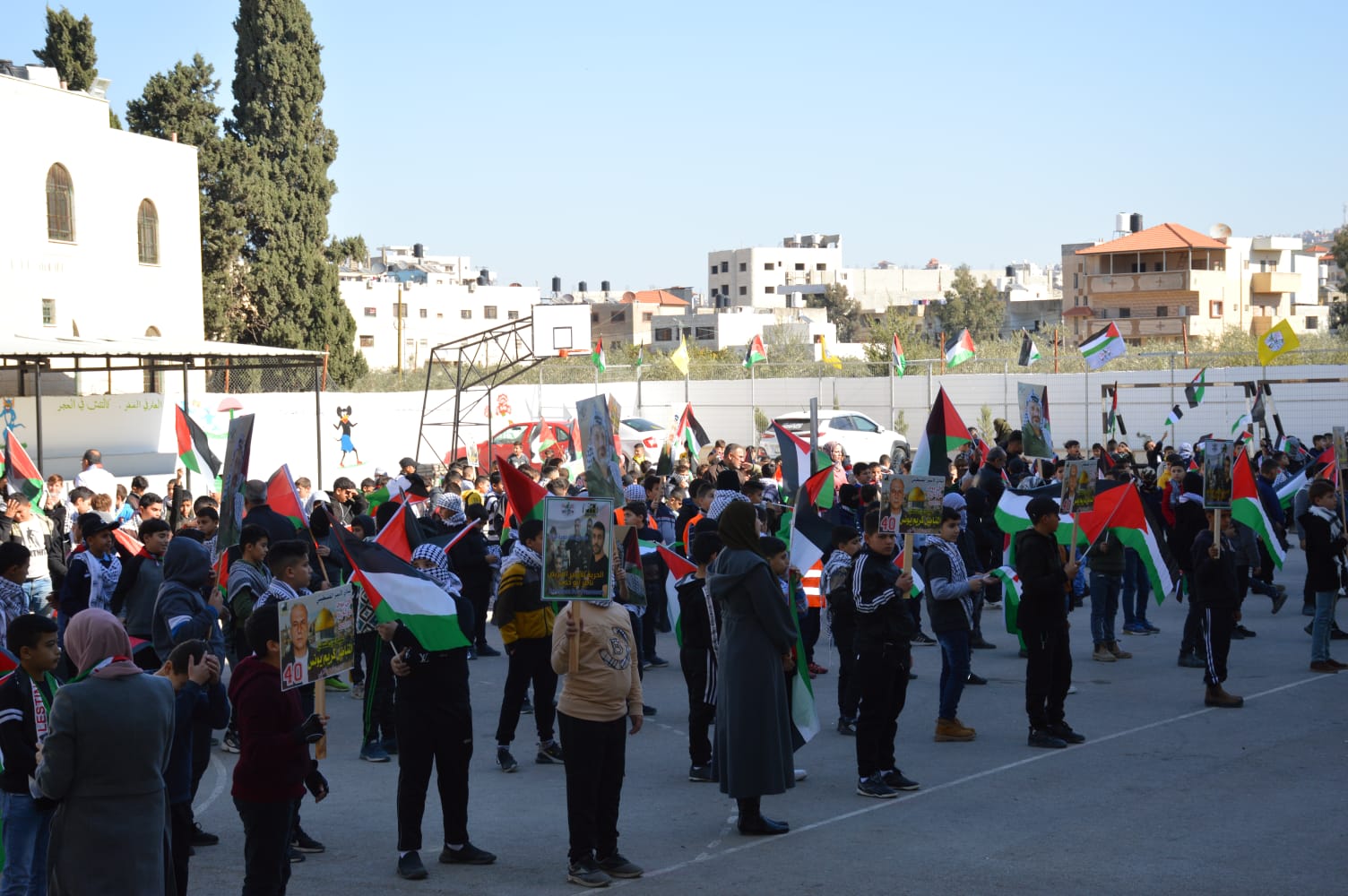 نابلس: بحضور رسمي وشعبي اطلاق حمله 40 ألف رسالة الأسير البطل كريم يونس بمدرسه الملك طلال