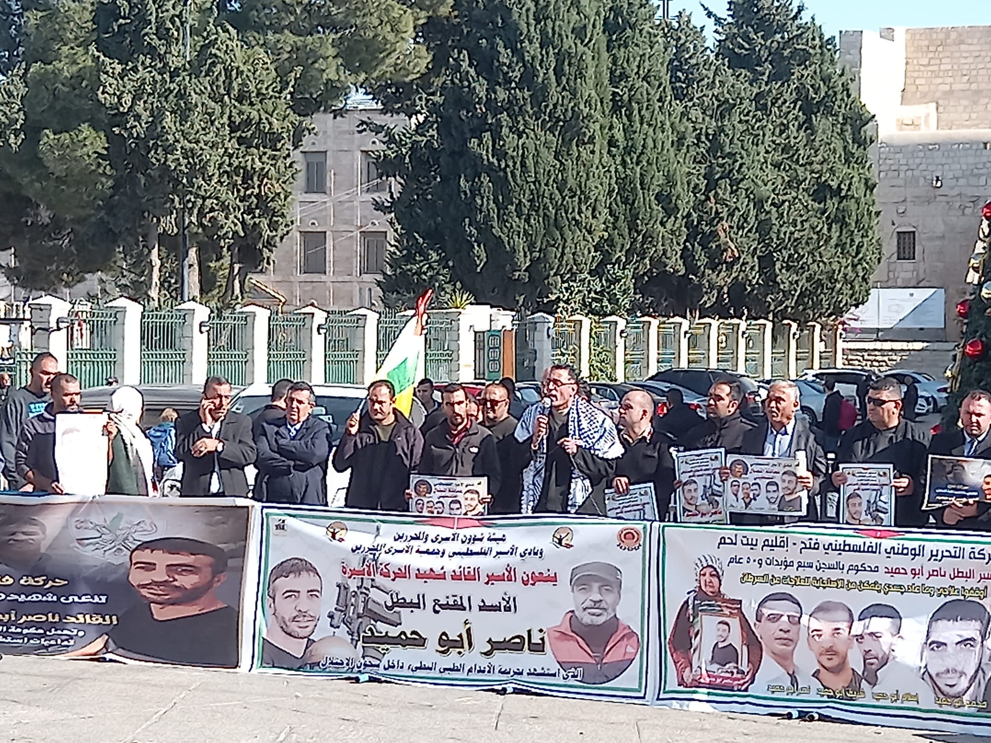 وقفة التنديد باغتيال الشهيد القائد ناصر أبو حميد في ساحة المهد في بيت لحم ظهر اليوم