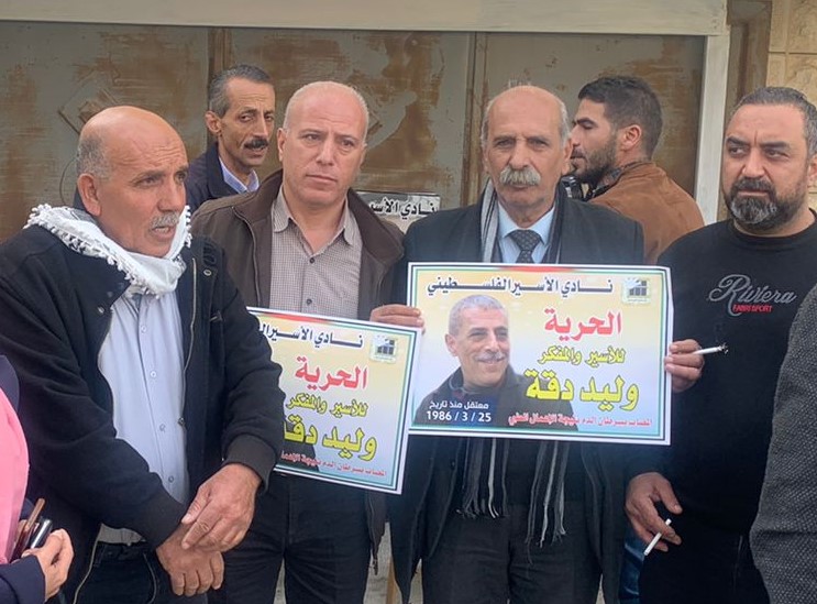 وقفة اسناد مع الأسيرين ناصر ابو حميد ووليد دقة أمام الصليب الأحمر في الخليل