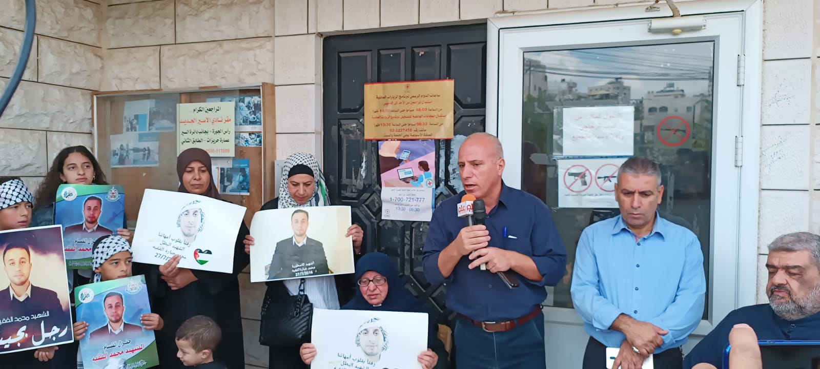 مشاركة نادي الأسير مع وقفة ذوي الشهداء اليوم أمام الصليب الأحمر الدولي في الخليل