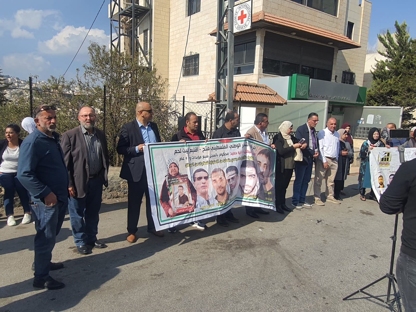 جانب من فعالية الدعم والاسناد للاسرى والاسيرات والتي نظمت ظهر اليوم امام الصليب الاحمر في ببت لحم