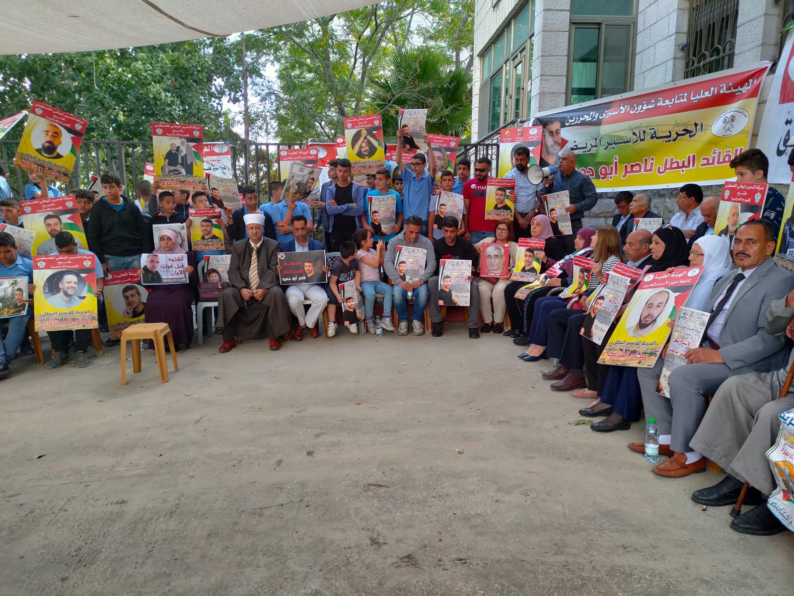البيرة اليوم: من الاعتصام الأسبوعي لإسناد الأسير المريض بالسرطان ناصر أبو حميد والأسرى والأسيرات كافة في سجون الاحتلال اليوم من أمام مقر الصليب الأحمر.
