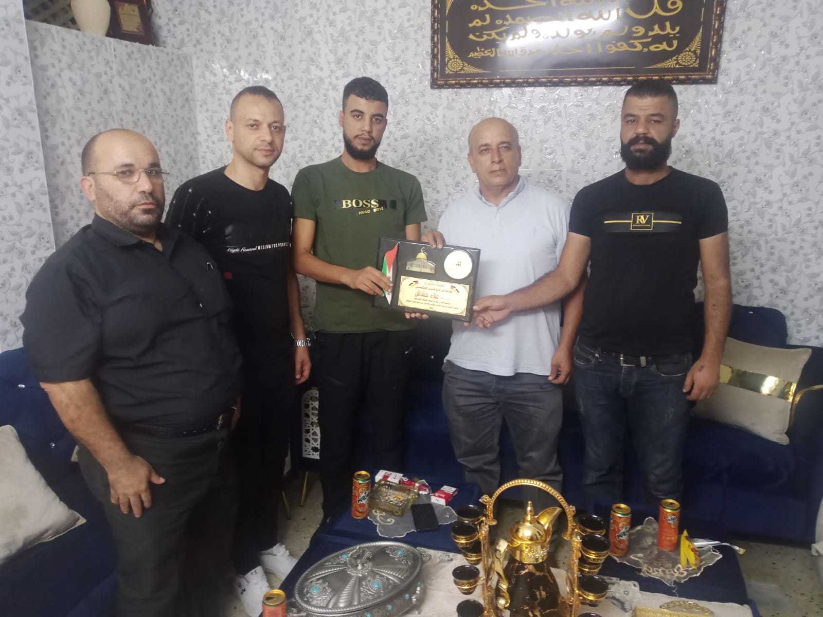 وفد نادي الأسير الفلسطيني يكرم الأسير المحرر علاء حشاش من مخيم بلاطه بعد اعتقال دام 8سنوات في سجون الاحتلال الإسرائيلي