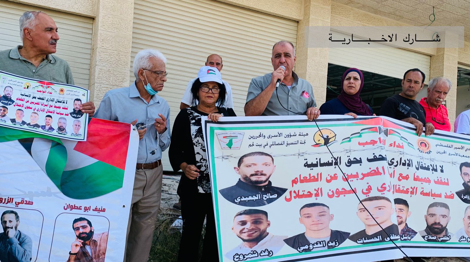 جانب من الوقفة المساندة للاسرى المرضى والمضربين عن الطعام رفضا لسياسة الاعتقال الاداري والتي تم تنظيمها ظهر اليوم امام الصليب الاحمر في محافظة بيت لحم