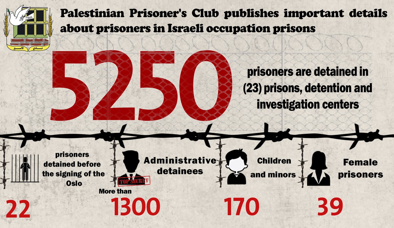 Palestinian Prisoner's Club publishes important details about prisoners in Israeli occupation prisons