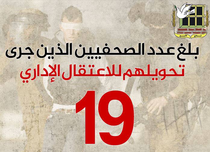 🖇️بلغ عدد الصحفيين الذين جرى تحويلهم للاعتقال الإداري (19).