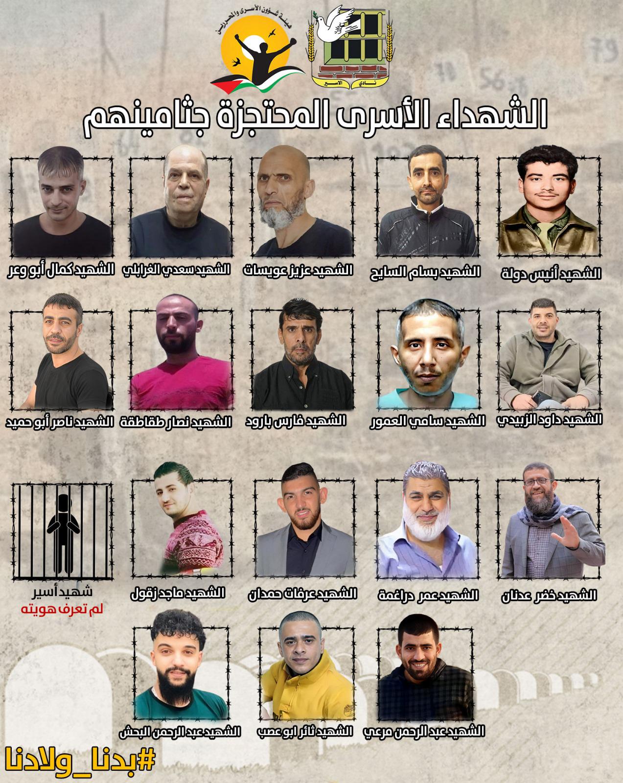 في يوم الشهيد الفلسطينيسبعة شهداء ارتقوا في سجون الاحتلال بعد السابع من أكتوبر، بينهم شهيد لم تعرف هويته حتى اليوم، فيما يواصل الاحتلال الإسرائيلي احتجاز جثامين 18 من شهداء الحركة الأسيرة أقدمهم الأسير أنيس دولة منذ عام 1980
