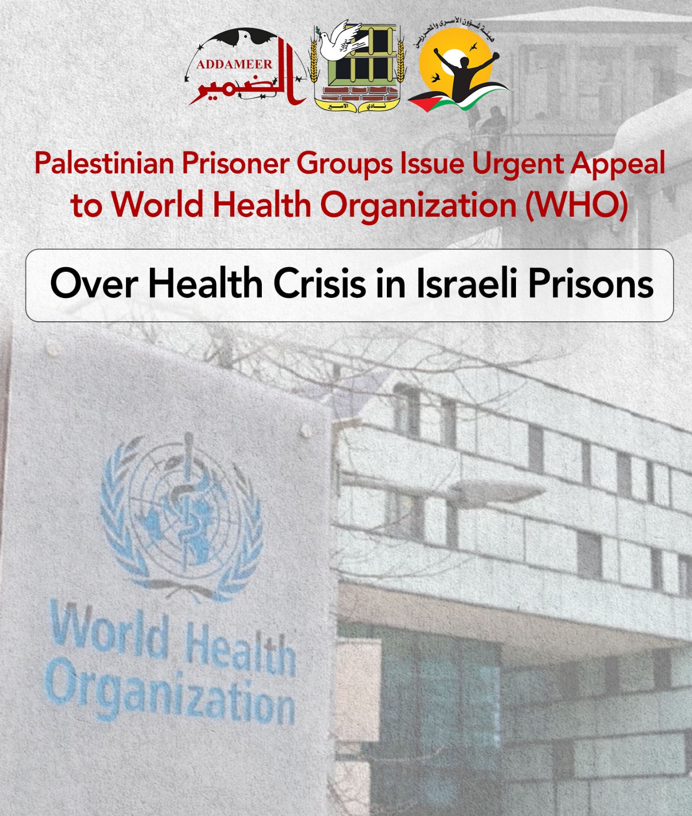 The appeal to the Director-General states: "This is not just a public health emergency — it is a humanitarian catastrophe," noting the martyrdom of at least 65 Palestinian prisoners since the genocide, including a 17-year-old child who was killed through starvation and subsequent diseases. The appeal also noted that diseases have spread across various prisons — particularly in the Naqab, Megiddo, Gilboa, and Ofer prisons.