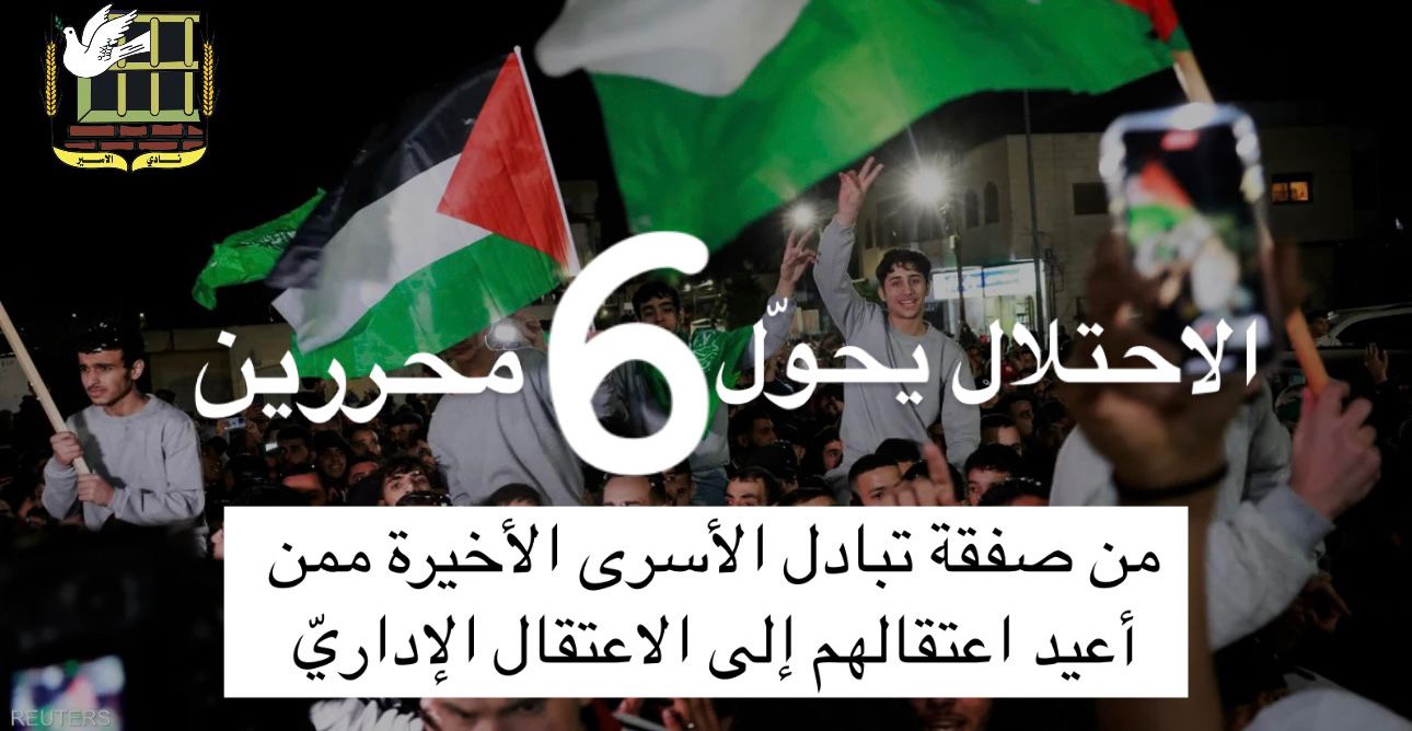 ● الاحتلال يحوّل ستة محررين من صفقة تبادل الأسرى الأخيرة ممن أعيد اعتقالهم إلى الاعتقال الإداريّ