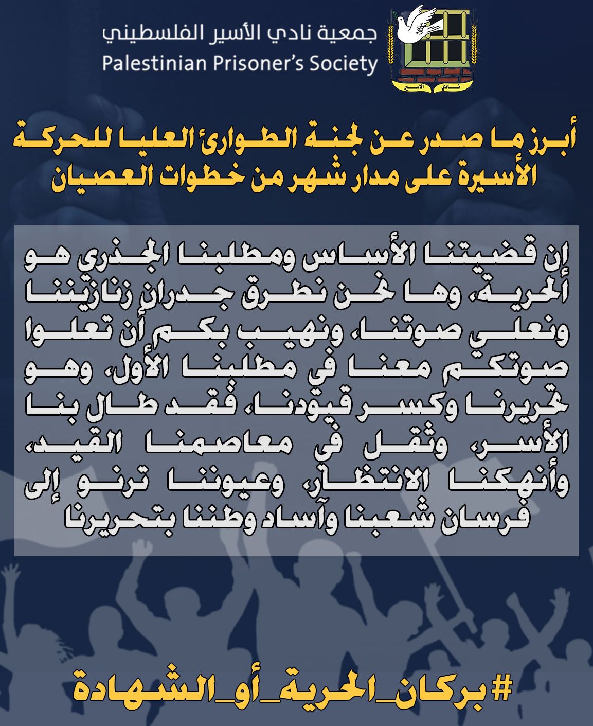 نادي الأسير يستعرض أبرز ما جاء في البيانات الصادرة عن لجنة الطوارئ العليا للحركة الأسيرة