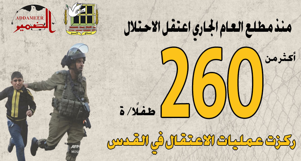 - منذ مطلع العام الجاري اعتقل الاحتلال أكثر من 260 طفلًا/ ة، تركزت عمليات الاعتقال في القدس.