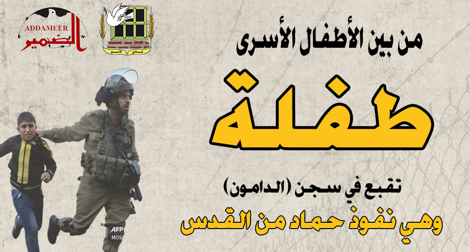 - من بين الأطفال الأسرى، طفلة تقبع في سجن (الدامون) وهي نفوذ حماد من القدس.
