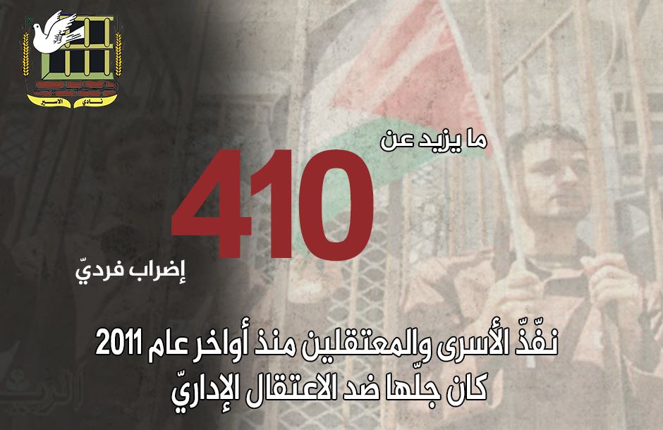 • منذ أواخر عام 2011، حتى نهاية العام الجاريّ، نفّذّ الأسرى والمعتقلون الإداريون، ما يزيد عن 410 إضراب فرديّ، كان جلّها ضد الاعتقال الإداريّ.