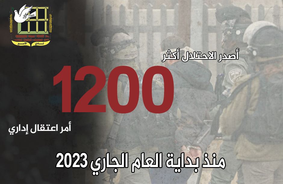 • ومنذ بداية العام الجاري 2023، أصدر الاحتلال نحو (1200) أمر اعتقال إداريّ.