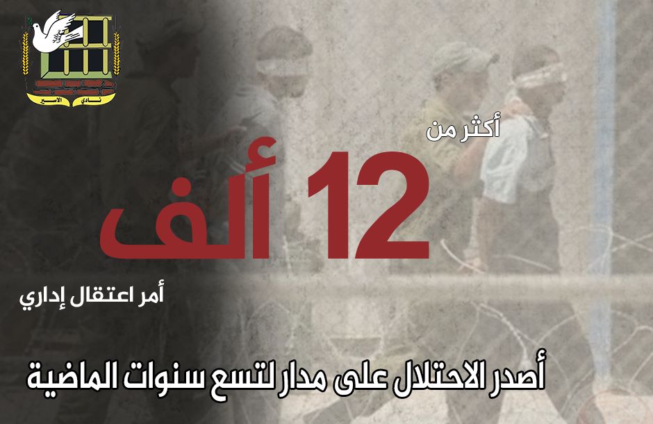 • ومنذ عام 2015، أصدر الاحتلال أكثر من 12 ألف أمر اعتقال إداريّ .