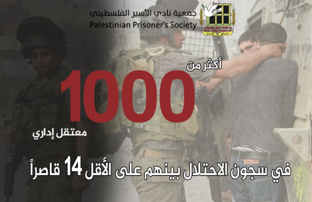 • تجاوز عدد المعتقلين الإداريين اليوم 1000 معتقل بينهم 14 طفل إداري، من بينهم أسيرتان.