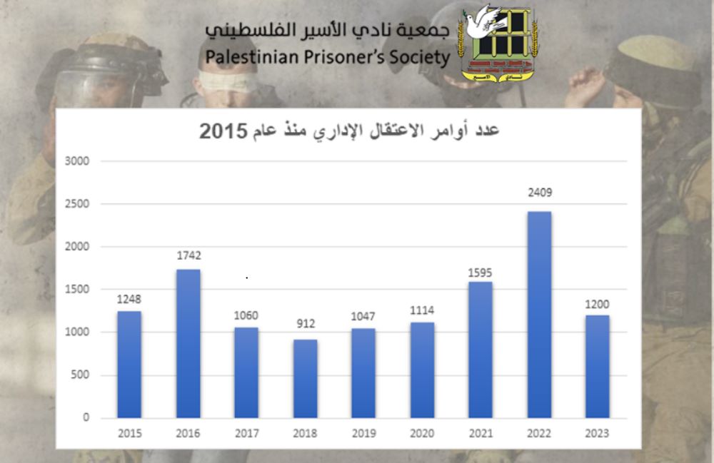 وقال نادي الأسير، أنّه ومنذ مطلع العام الجاري استمرت سلطات الاحتلال بتوسيع دائرة الاعتقال الإداريّ، حيث تجاوز عدد المعتقلين الإداريين الألف معتقل، من بينهم 14 طفلًا، وأسيرتان، وبلغ عدد أوامر الاعتقال الإداريّ أكثر من 1200، ويقبع المعتقلون الإداريون اليوم في ثلاثة سجون مركزية وهي: (عوفر، والنقب، ومجدو).