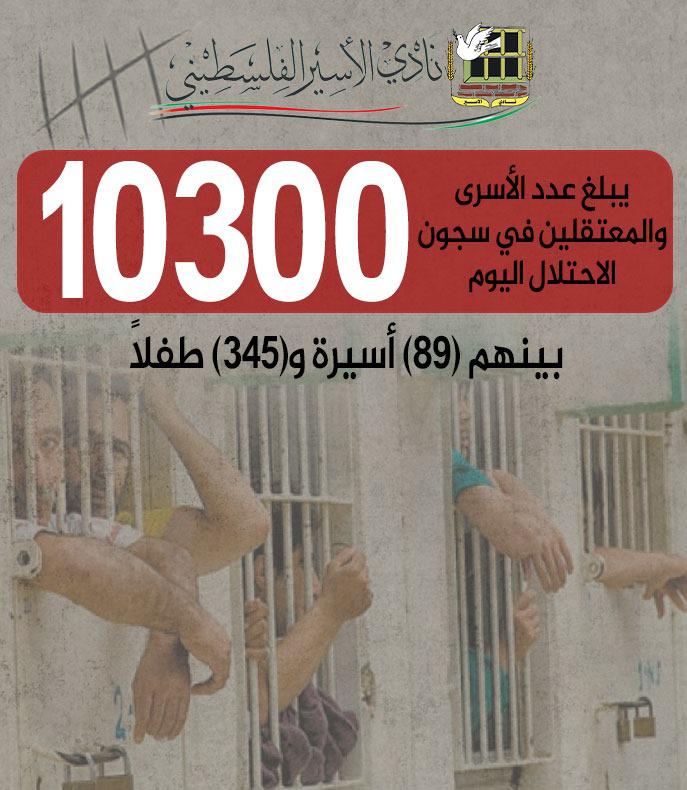 🔴 أكثر من عشرة آلاف و300 أسير ومعتقل داخل سجون الاحتلال