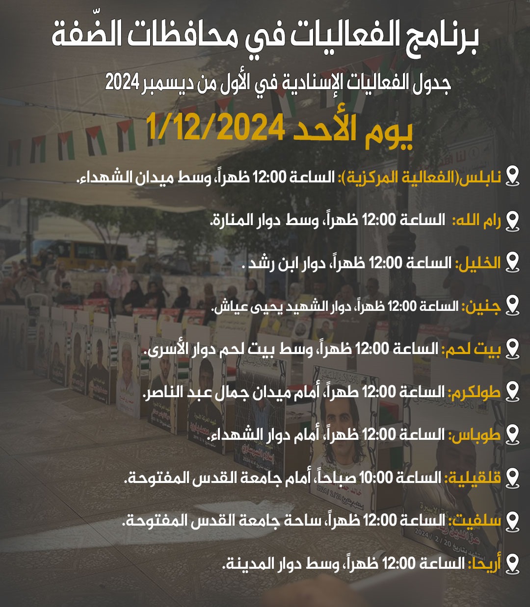 🔴 الإعلان عن برنامج الفعاليات المقررة لليوم الوطني المركزي في الضّفة يوم 1/12/2024 إسناداً لشعبنا في غزة ولأسرانا في سجون الاحتلال