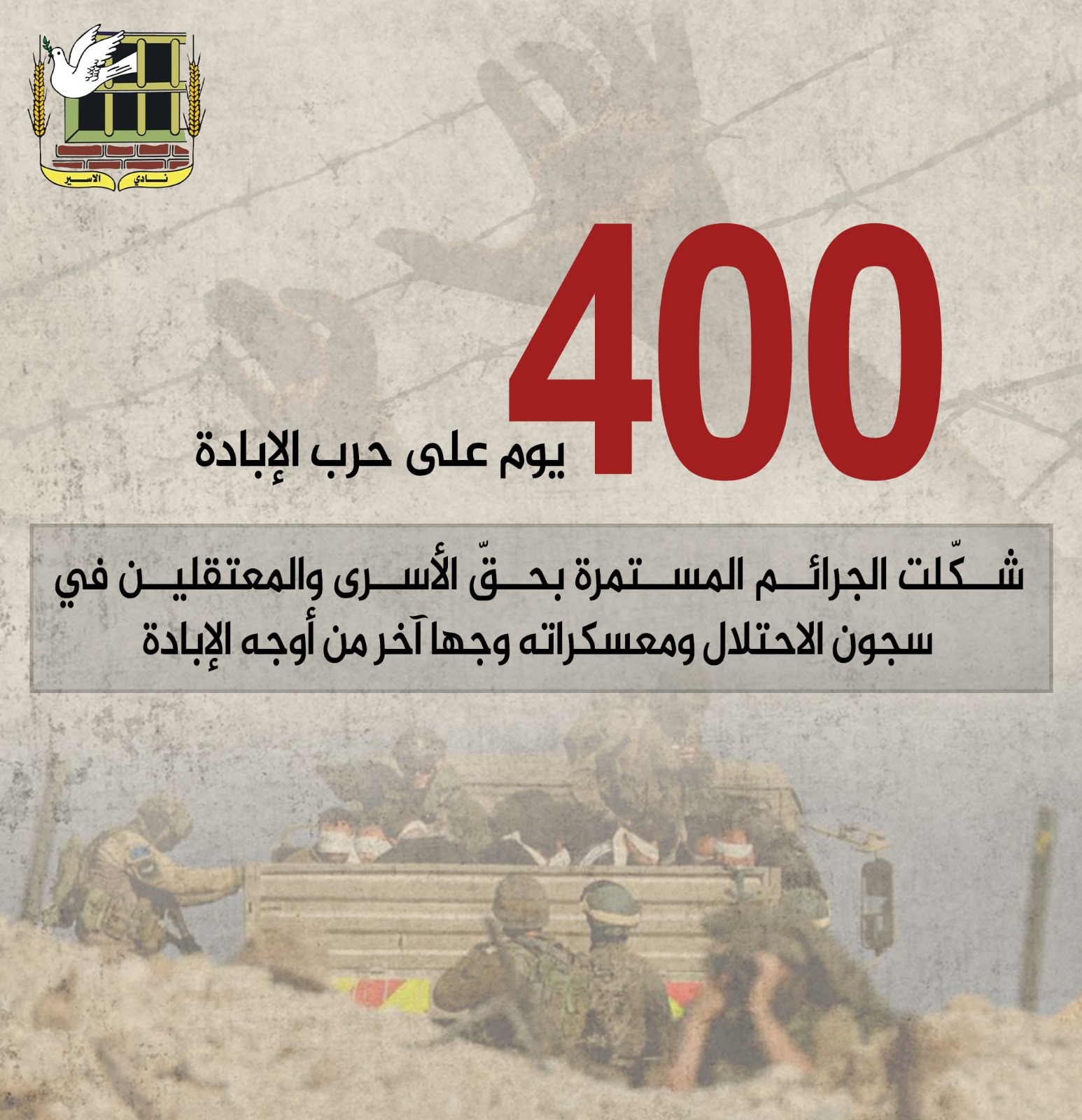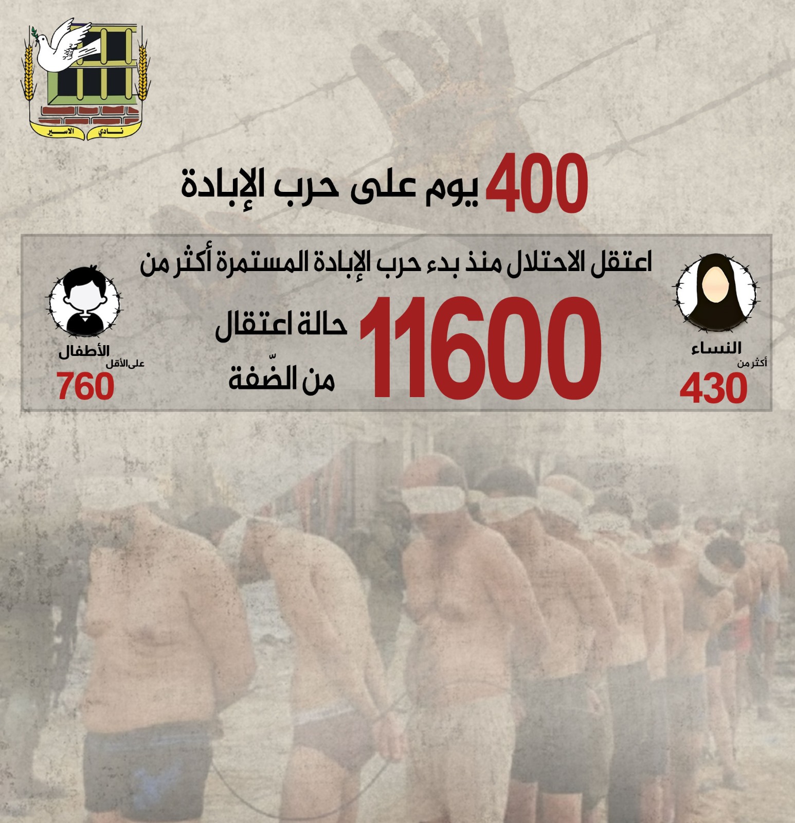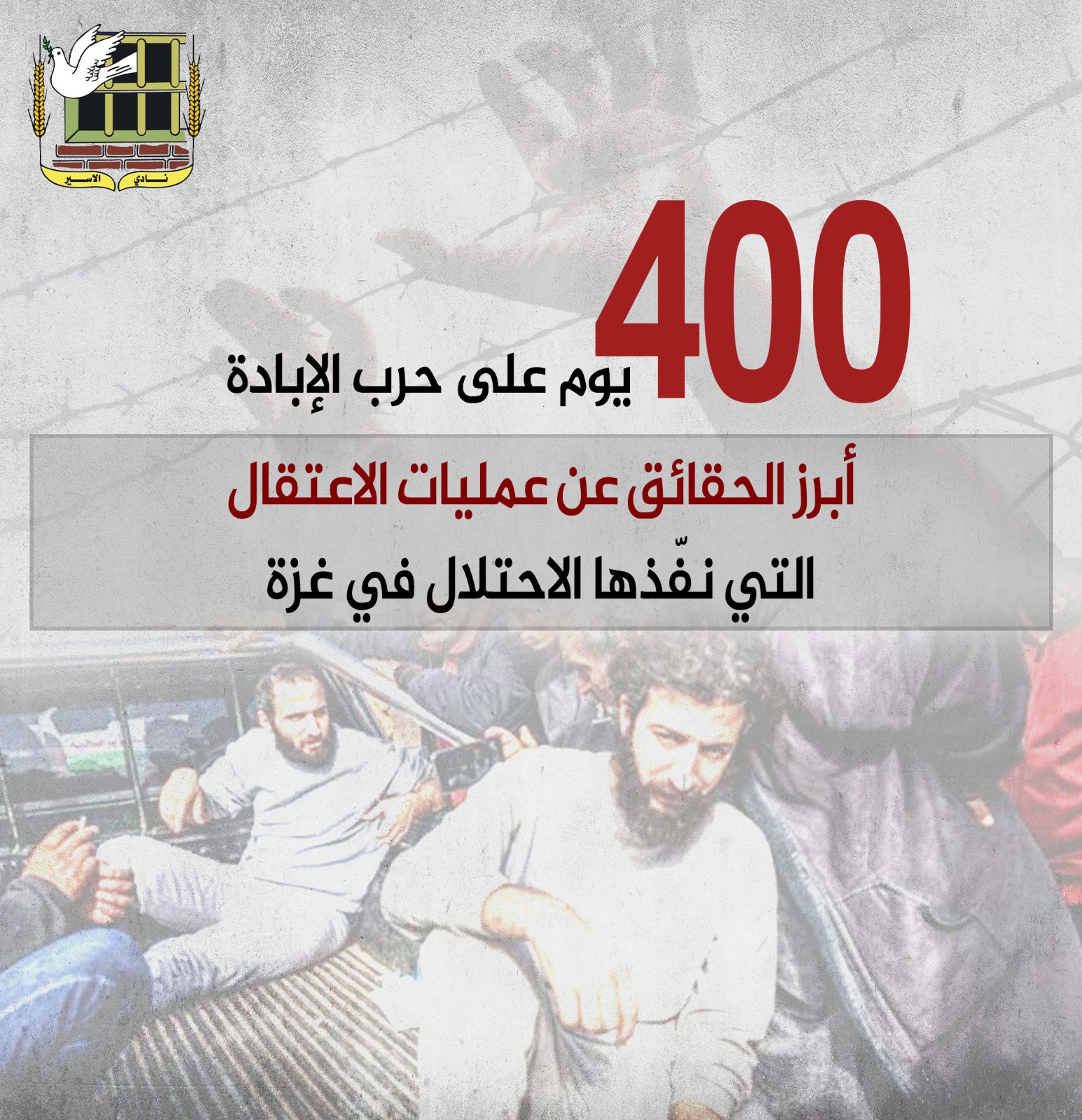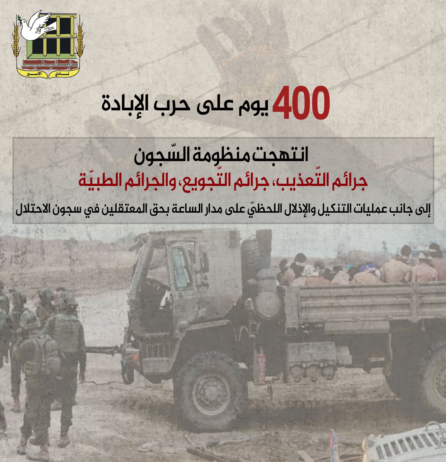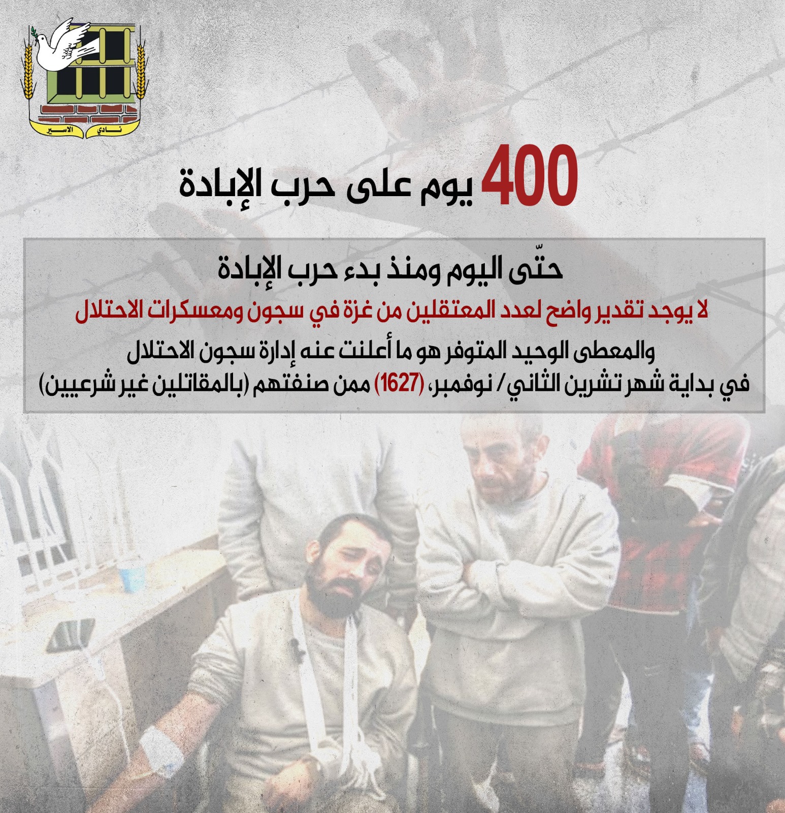 🔴 نادي الأسير الفلسطيني: مع استمرار حرب الإبادة ومرور 400 يوم مع عجز العالم عن وقف الجرائم المروعة، المزيد من التفاصيل