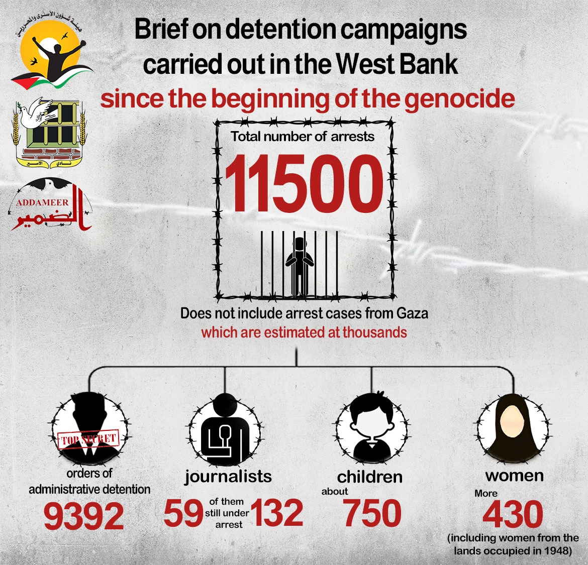 🔴 Brief on detention campaigns carried out in the West Bank since the beginning of the genocide
