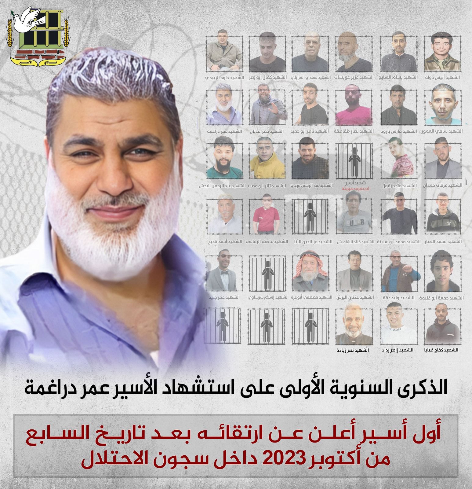 🔴 نادي الأسير: الذكرى السنوية الأولى على استشهاد الأسير عمر دراغمة