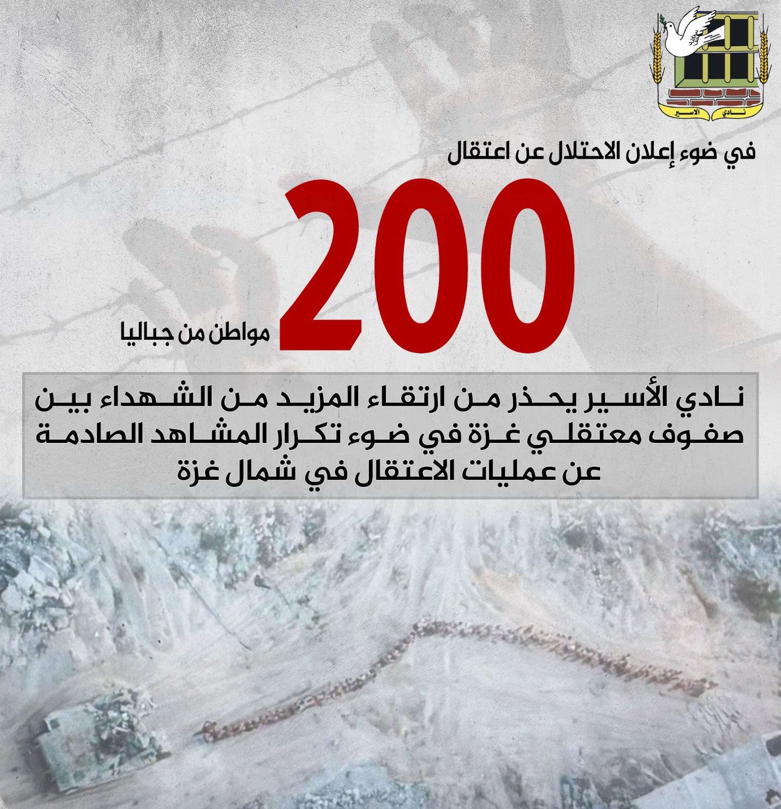 🔴 في ضوء إعلان الاحتلال عن اعتقال 200 مواطن من جباليا