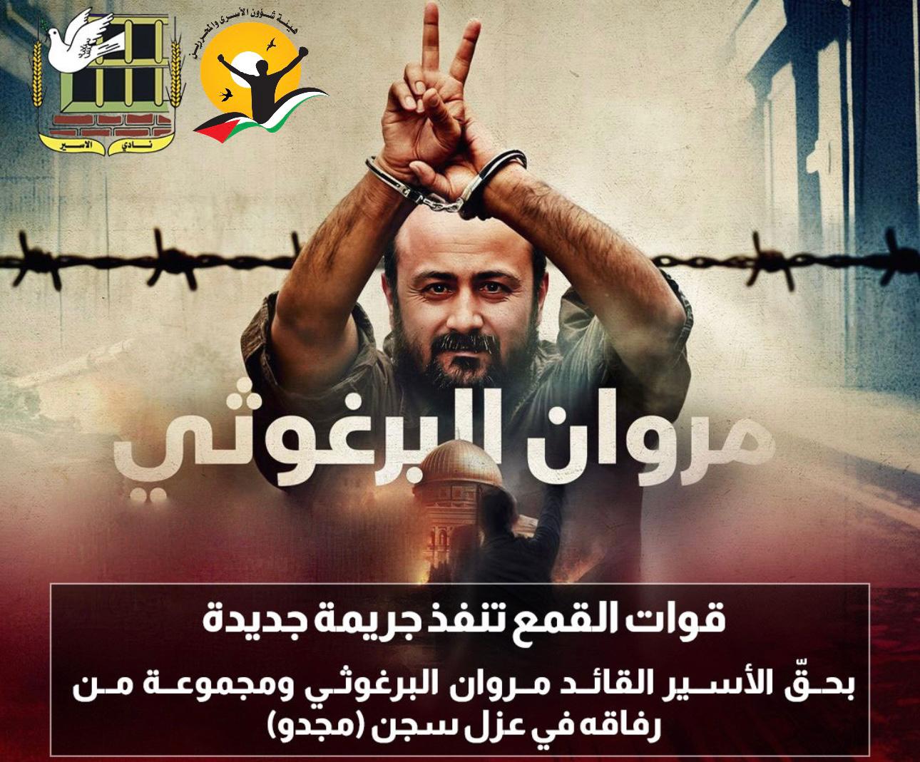 🔴 هيئة الأسرى ونادي الأسير: قوات القمع تنفذ جريمة جديدة بحقّ الأسير القائد مروان البرغوثي ومجموعة من رفاقه في عزل سجن (مجدو)