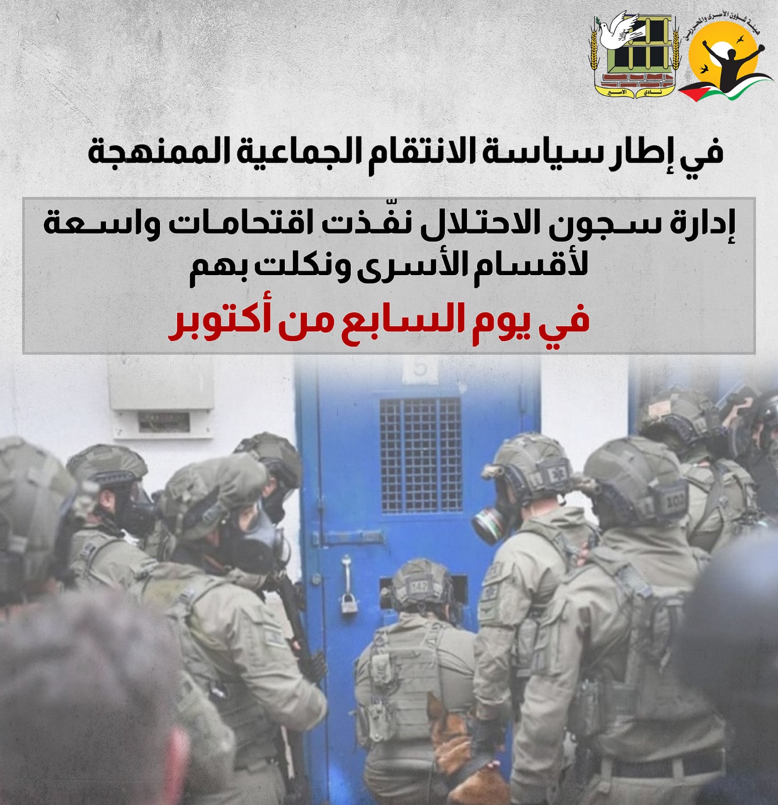 🔴 كيف نفّذت إدارة السجون سياستها الانتقامية بحق الأسرى في السابع من أكتوبر الجاري؟