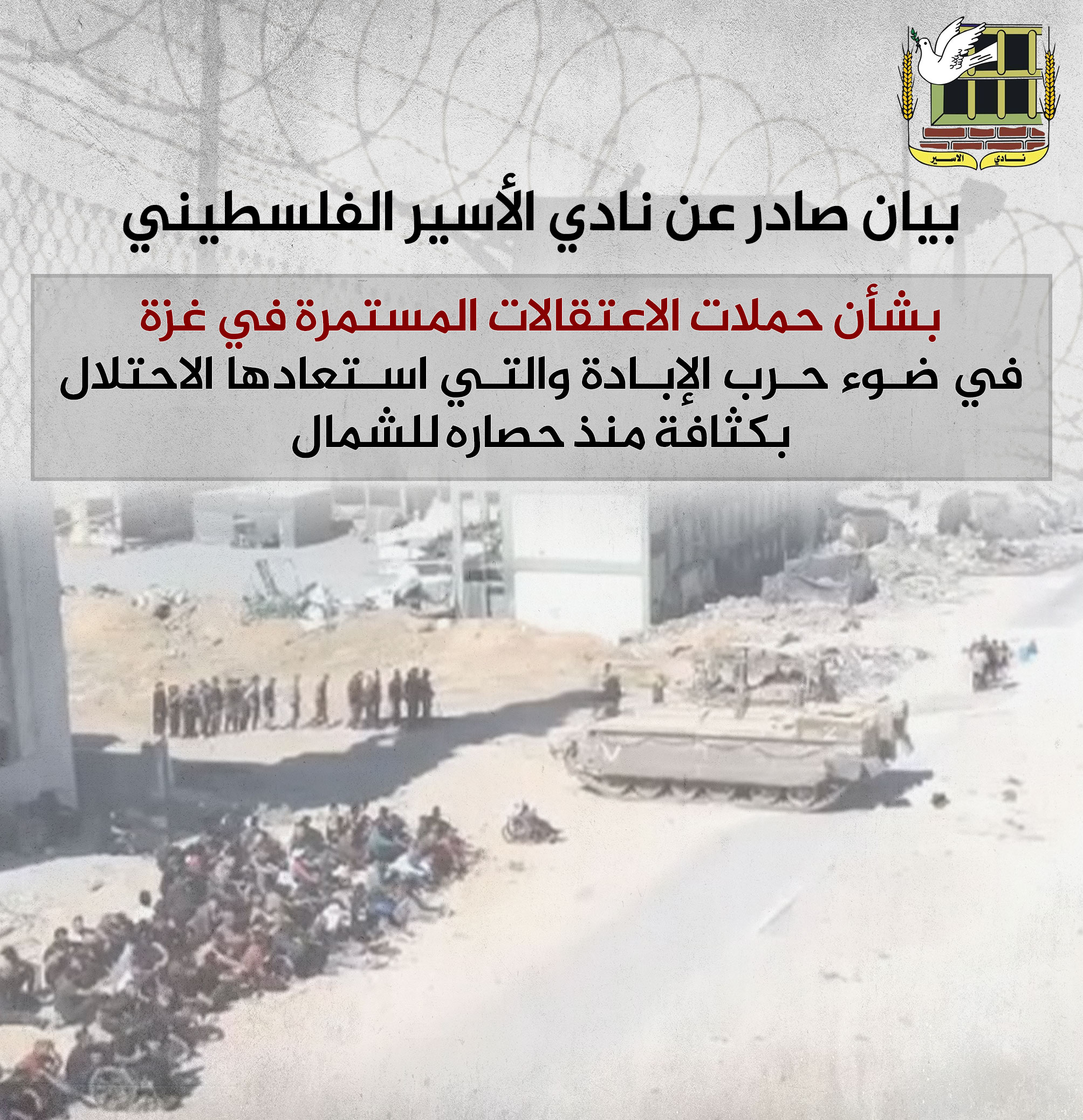 🔴 بيان صادر عن نادي الأسير الفلسطيني بشأن حملات الاعتقالات المستمرة في غزة في ضوء حرب الإبادة والتي استعادها الاحتلال بكثافة منذ حصاره للشمال