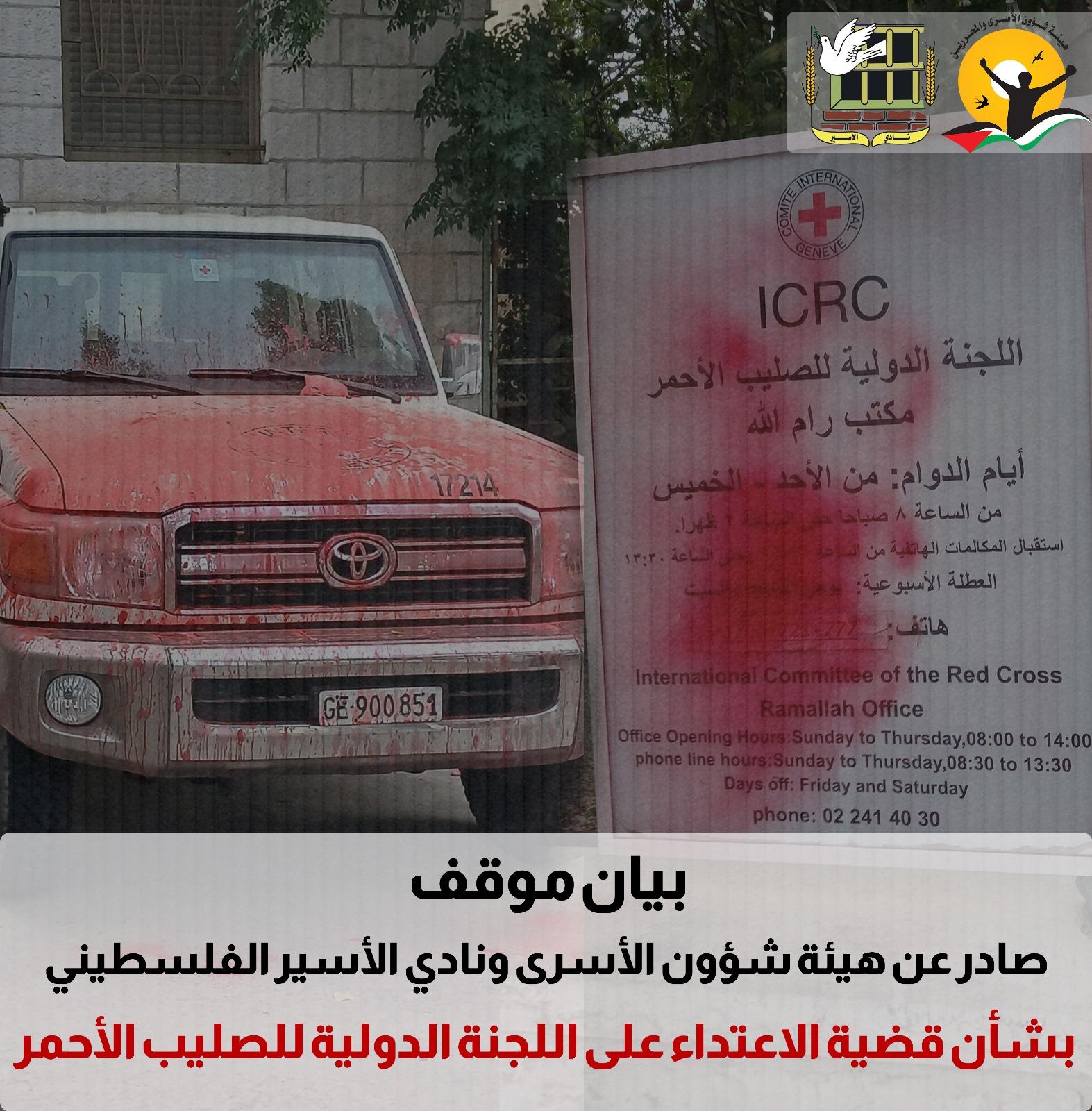 بيان موقف صادر عن هيئة شؤون الأسرى ونادي الأسير الفلسطيني بشأن قضية الاعتداء على اللجنة الدولية للصليب الأحمر