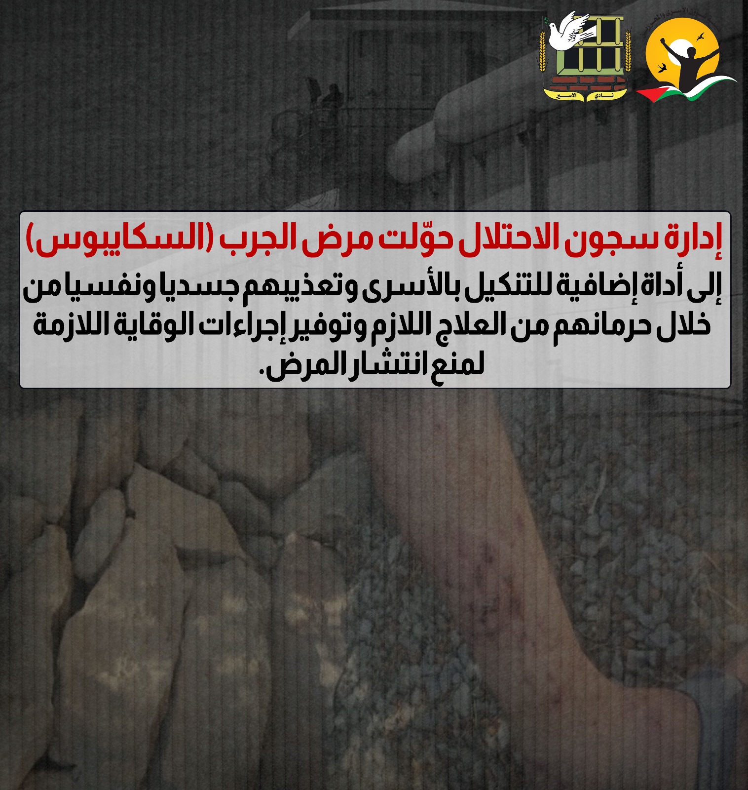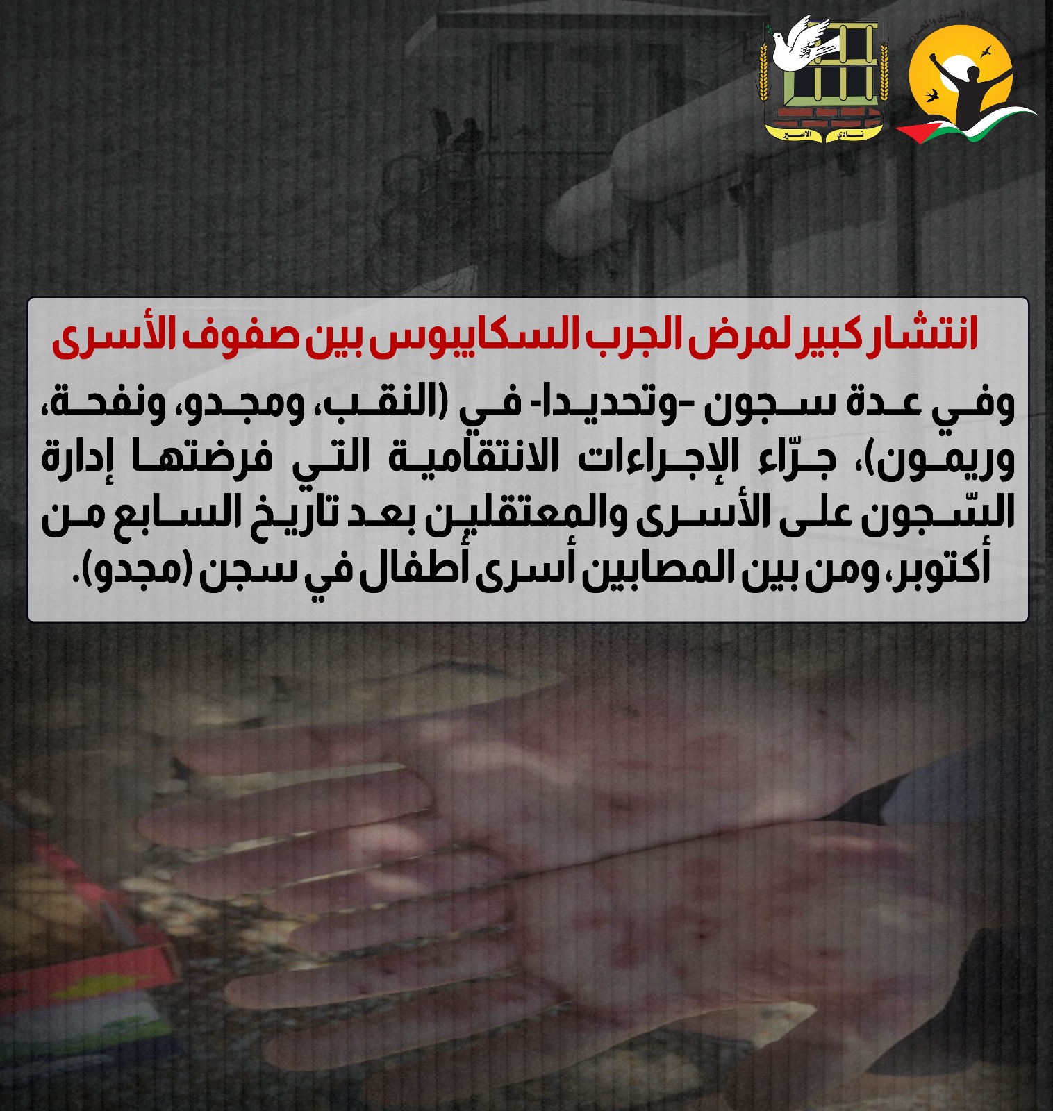 🔴 هيئة الأسرى ونادي الأسير: "انتشار كبير لمرض الجرب السكايبوس بين صفوف الأسرى، وفي عدة سجون المزيد من التفاصيل