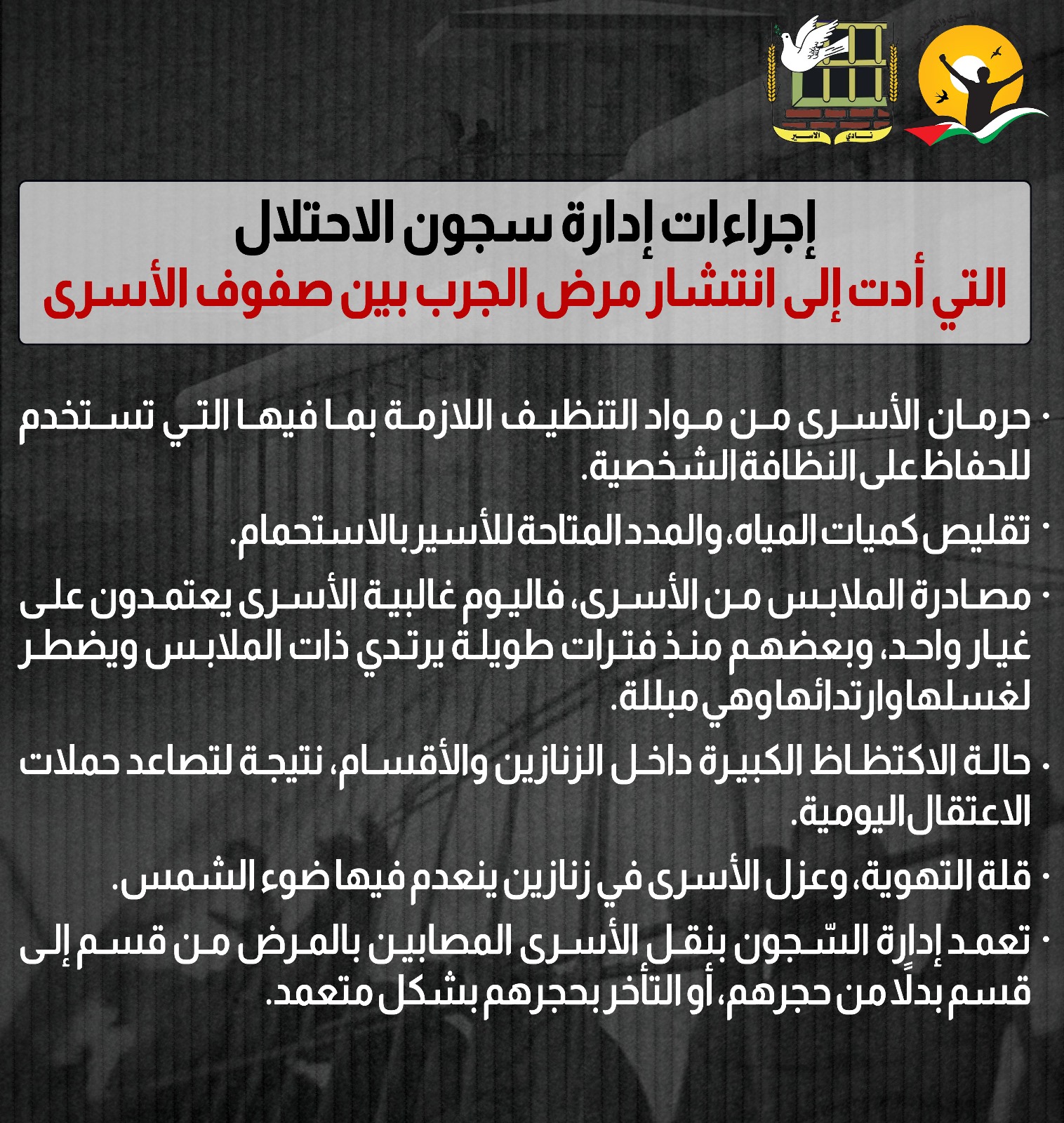 إجراءات إدارة سجون الاحتلال التي أدت إلى انتشار مرض الجرب بين صفوف الأسرى