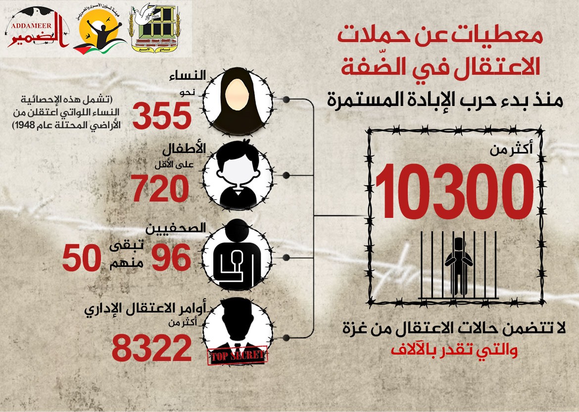 🔴 معطيات عن حملات الاعتقال في الضّفة منذ بدء حرب الإبادة المستمرة بعد السابع من أكتوبر