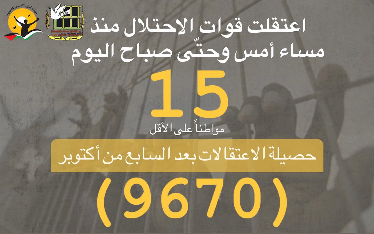 📌 ملخص حملة الاعتقالات التي نفذها الاحتلال لليوم 15/7/2024