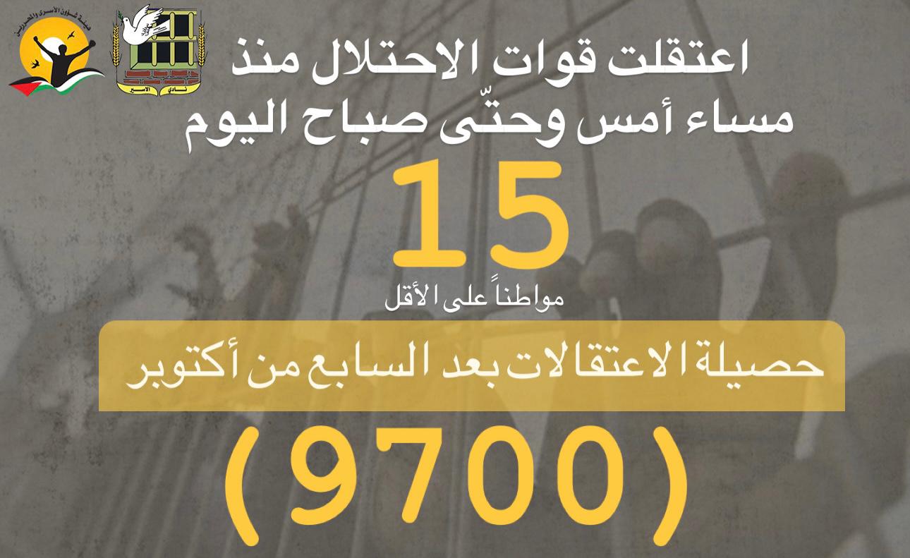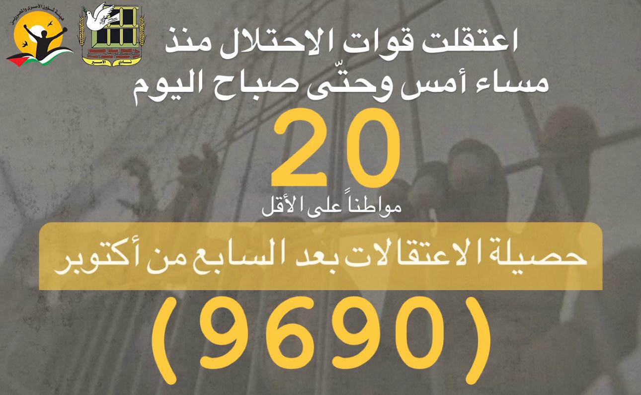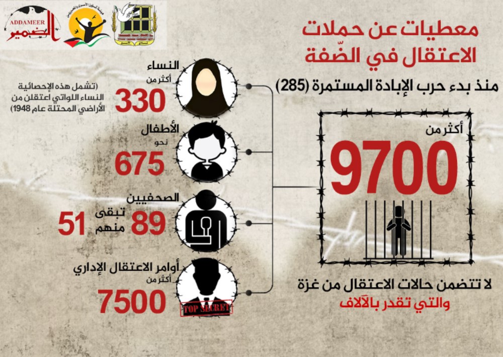 📌 أكثر من (9700) حالة اعتقال سجلت منذ بدء حرب الإبادة المستمرة