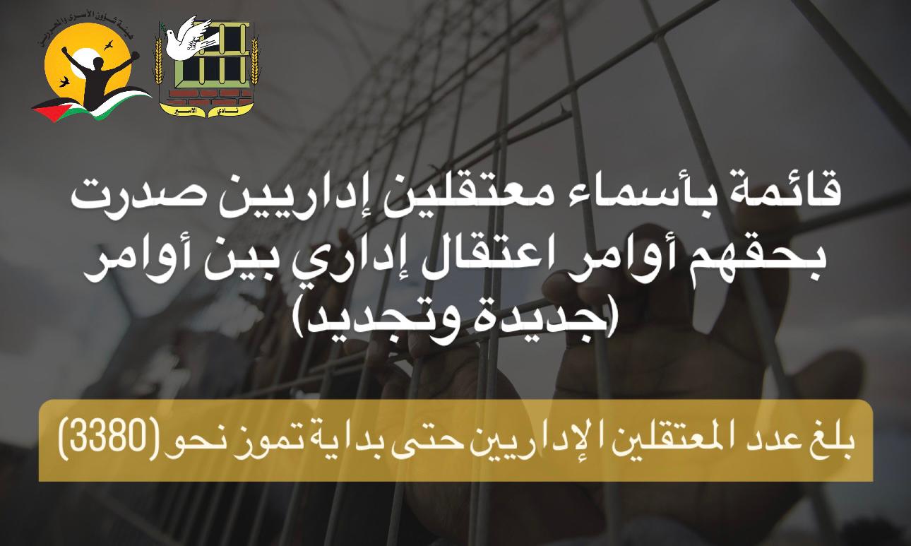 📌 قائمة بأسماء معتقلين إداريين صدرت بحقّهم أوامر اعتقال إداري بين أوامر (جديدة وتجديد)