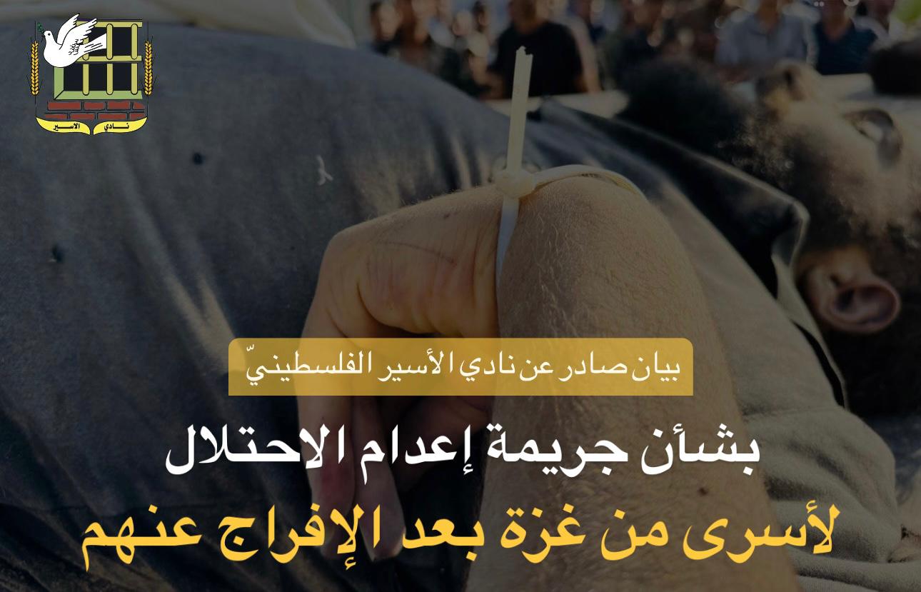 🔴 بيان صادر عن نادي الأسير الفلسطينيّ بشأن جريمة إعدام الاحتلال لأسرى من غزة فور الإفراج عنهم