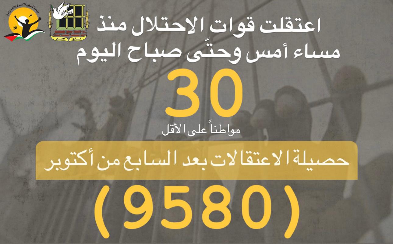 📌 ملخص حملة الاعتقالات التي نفذها الاحتلال لليوم 9/7/2024
