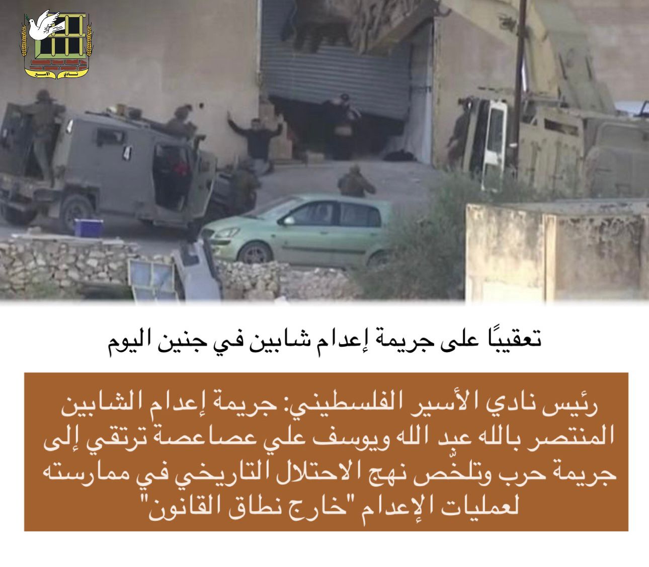 🔴 تعقيبًا على جريمة إعدام شابين في جنين اليوم