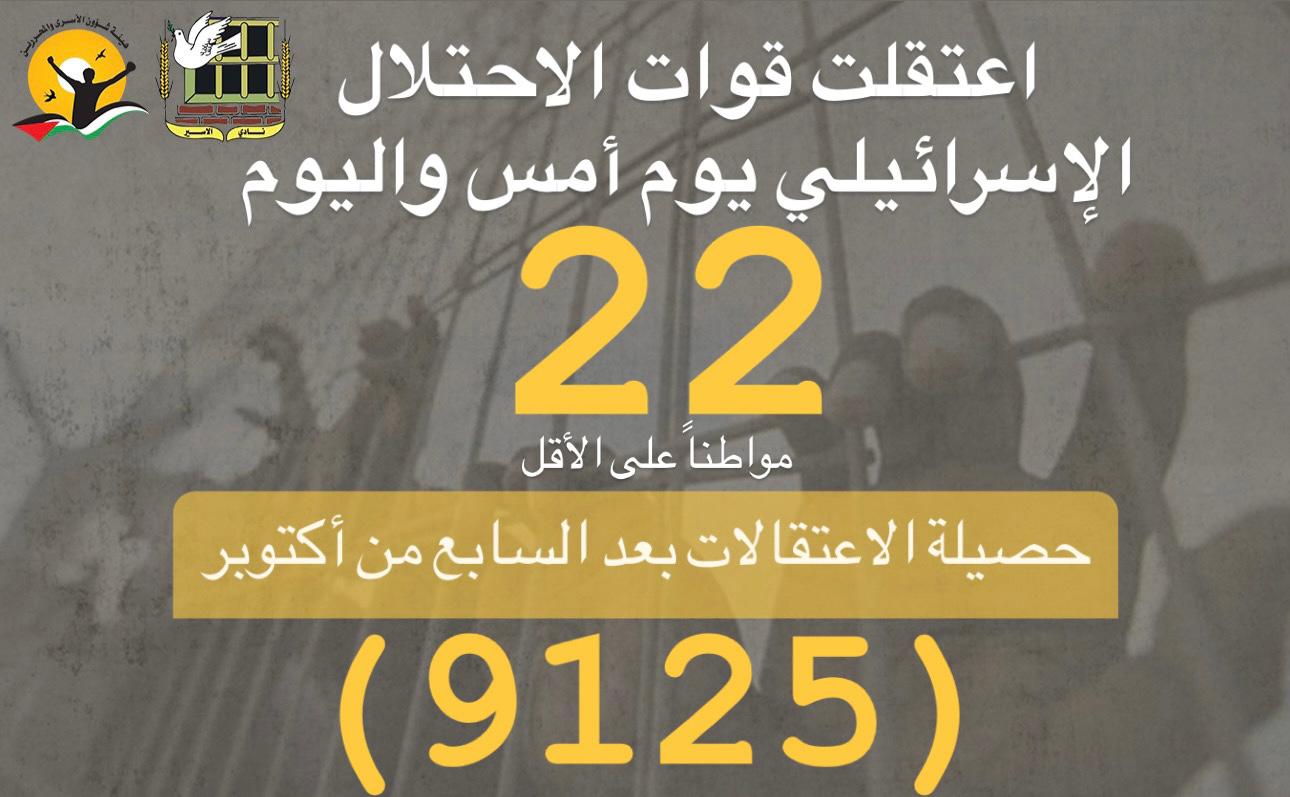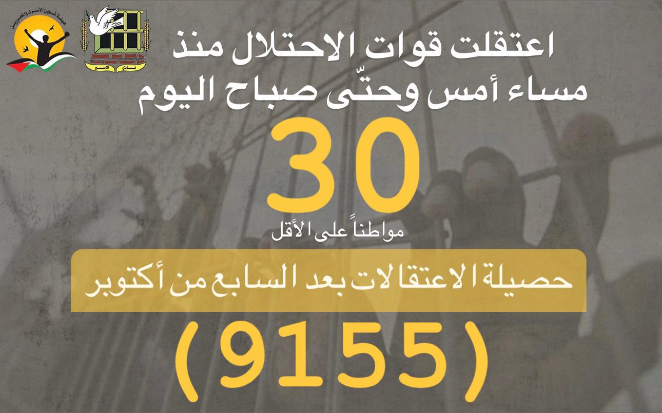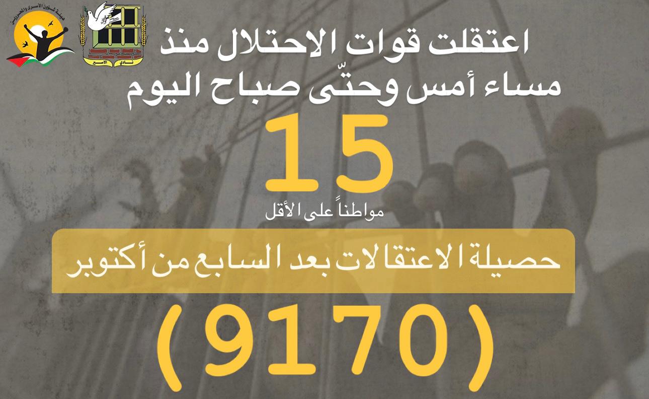 📌 ملخص حملة الاعتقالات التي نفذها الاحتلال يوم أمس واليوم