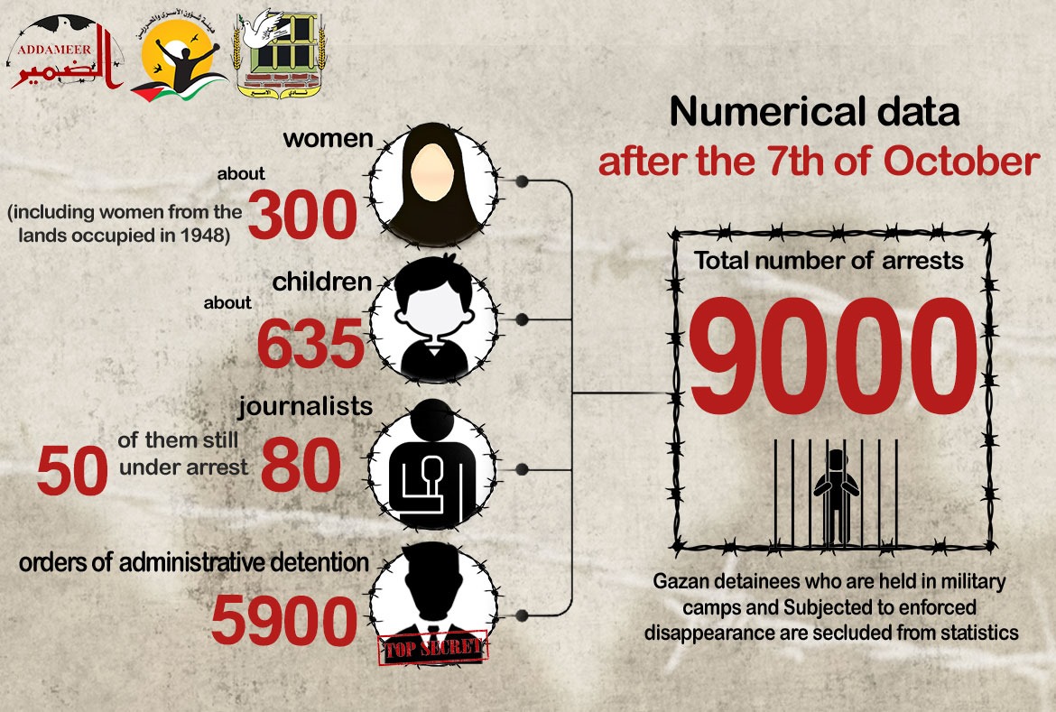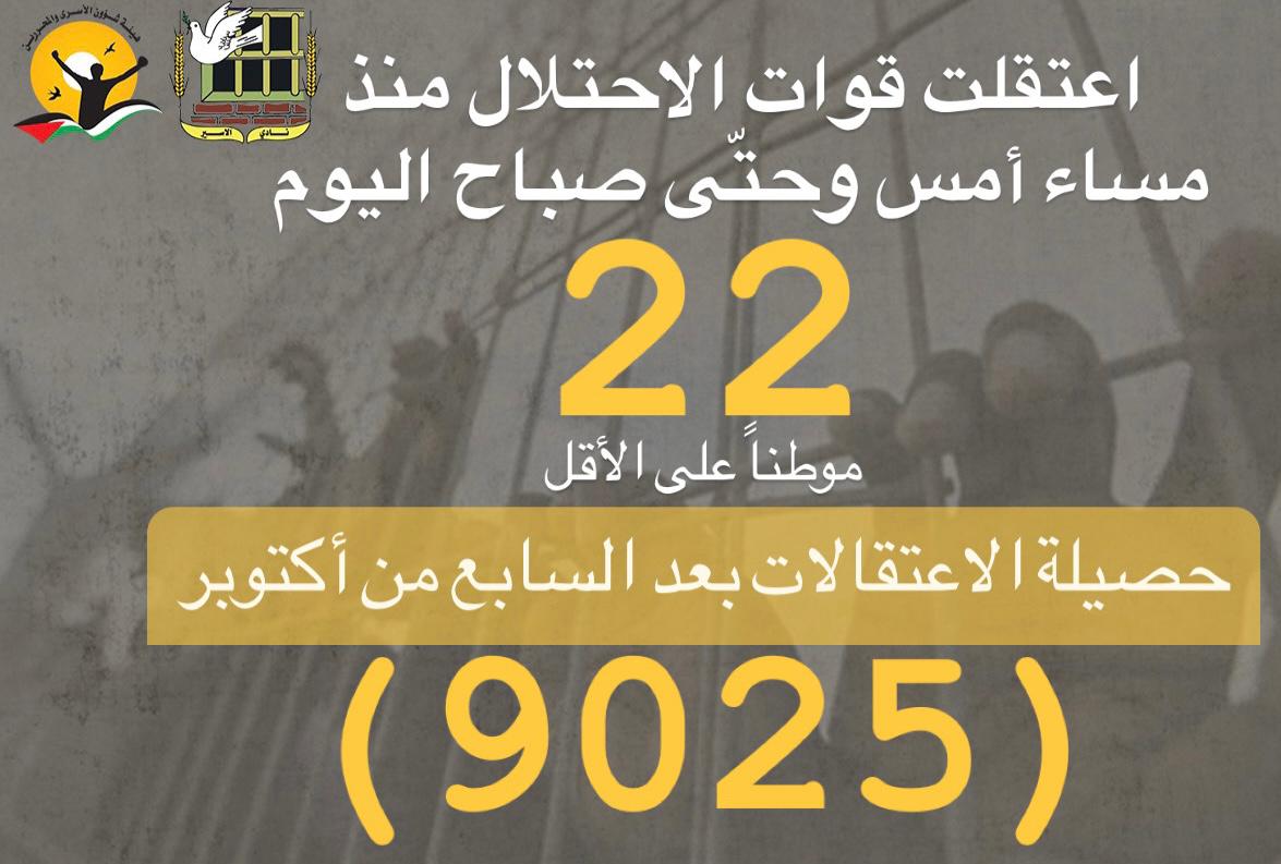 🔴 بلغت حصيلة حالات الاعتقال في الضفة بما فيها القدس ما لا يقل عن (9000)
