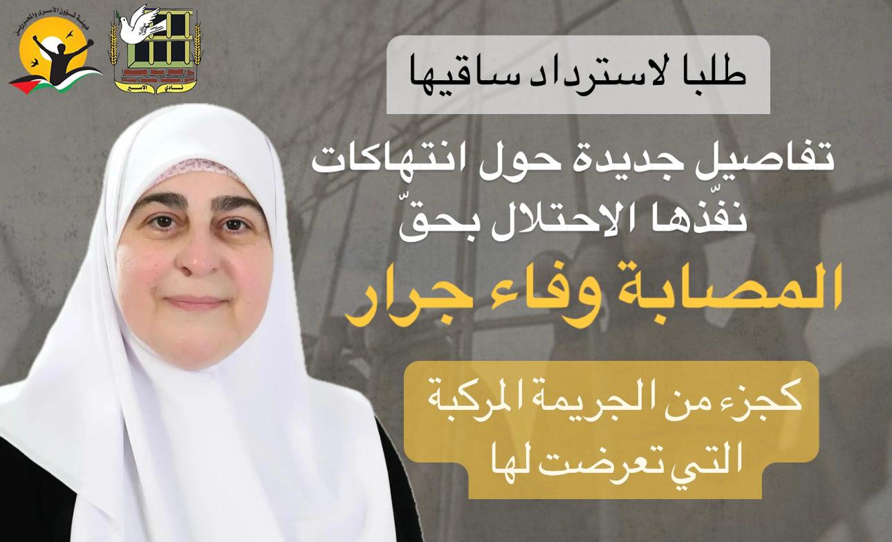 🔴 بيان صادر عن هيئة شؤون الأسرى والمحررين ونادي الأسير الفلسطيني بشأن طلب تقدمت به عائلة المصابة جرار لاسترداد ساقيها والحصول على ملفها الطبي