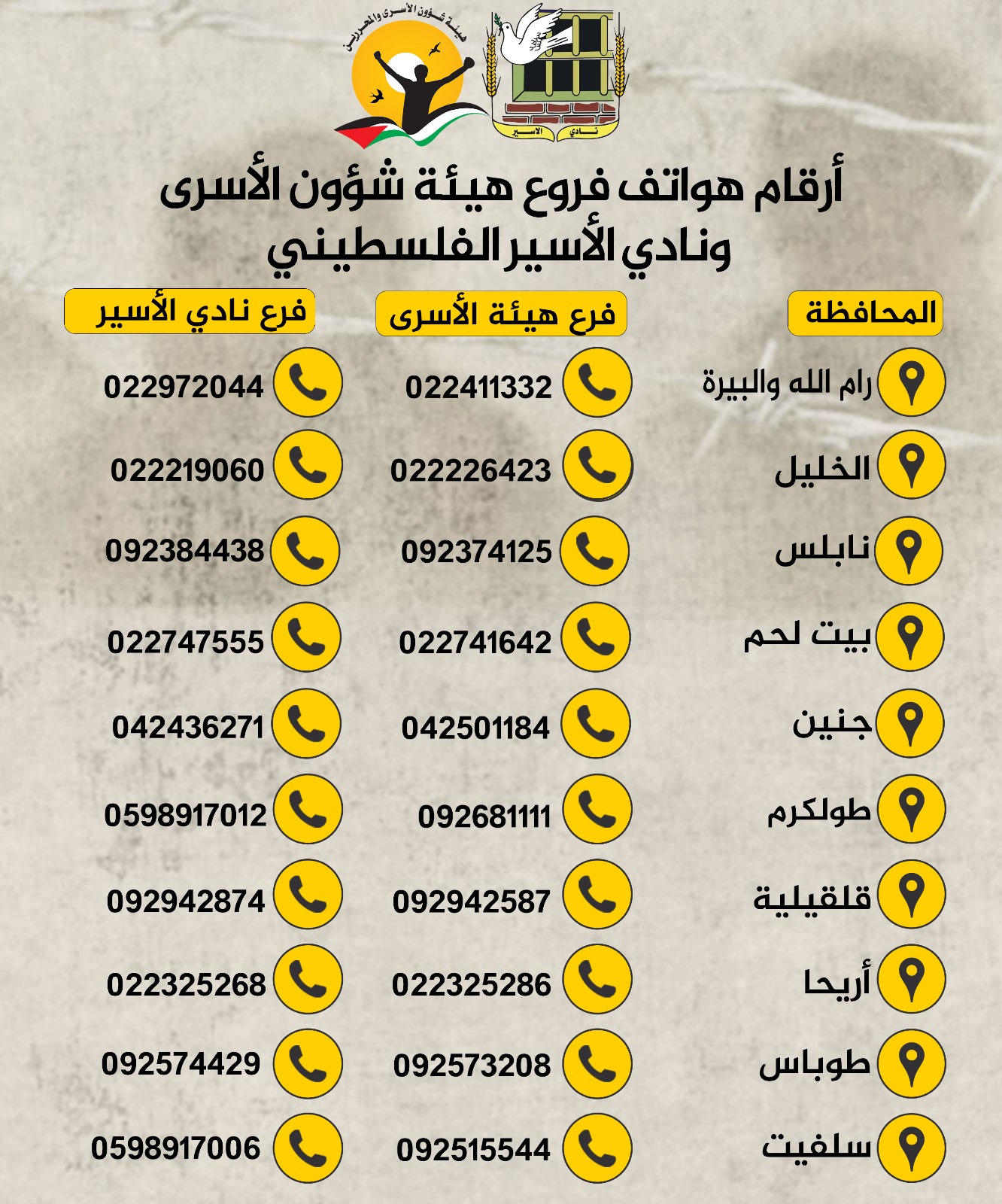 🔴 صادر عن هيئة شؤون الأسرى والمحررين ونادي الأسير الفلسطيني